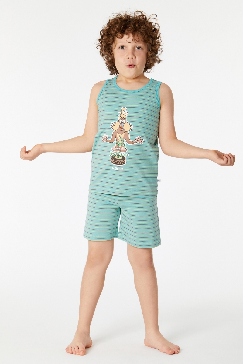 - 2-8 Yaş Erkek Çocuk Pijama-Pzc - 978-Mandril Temalı Çizgili Yeşil