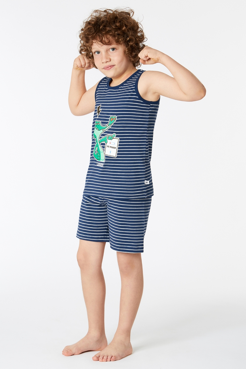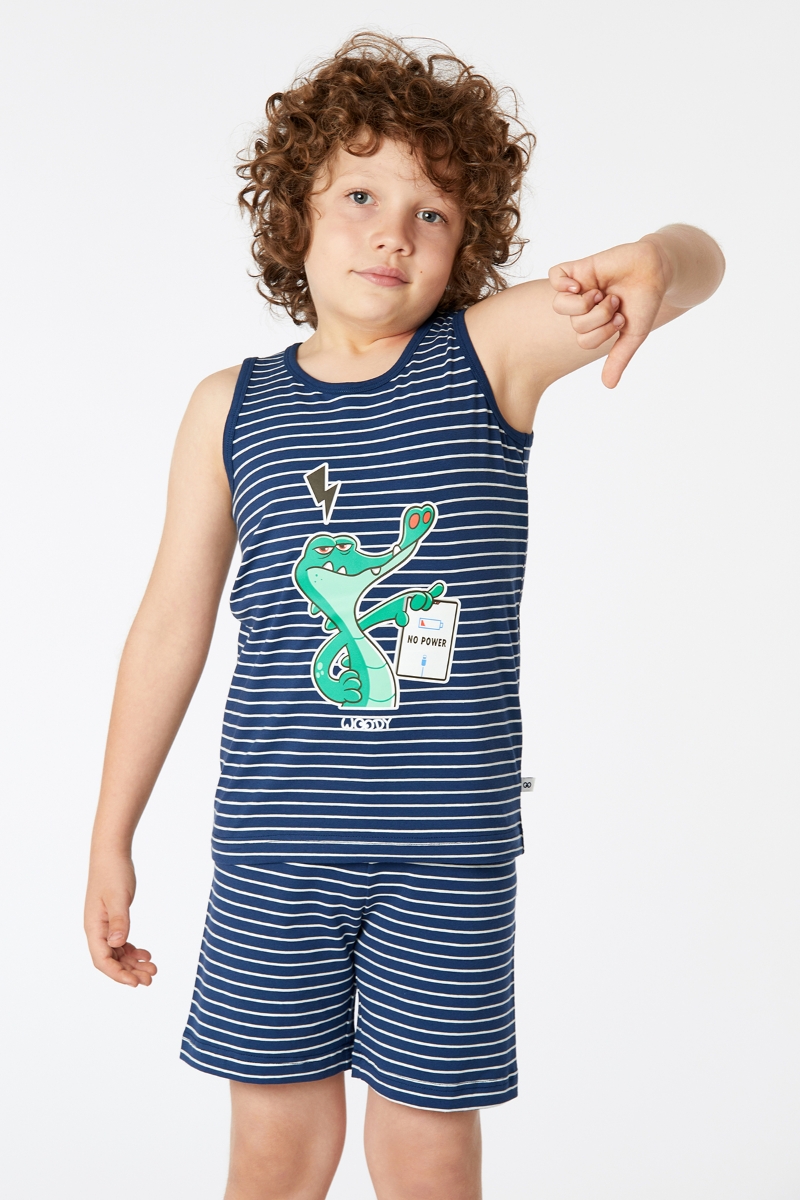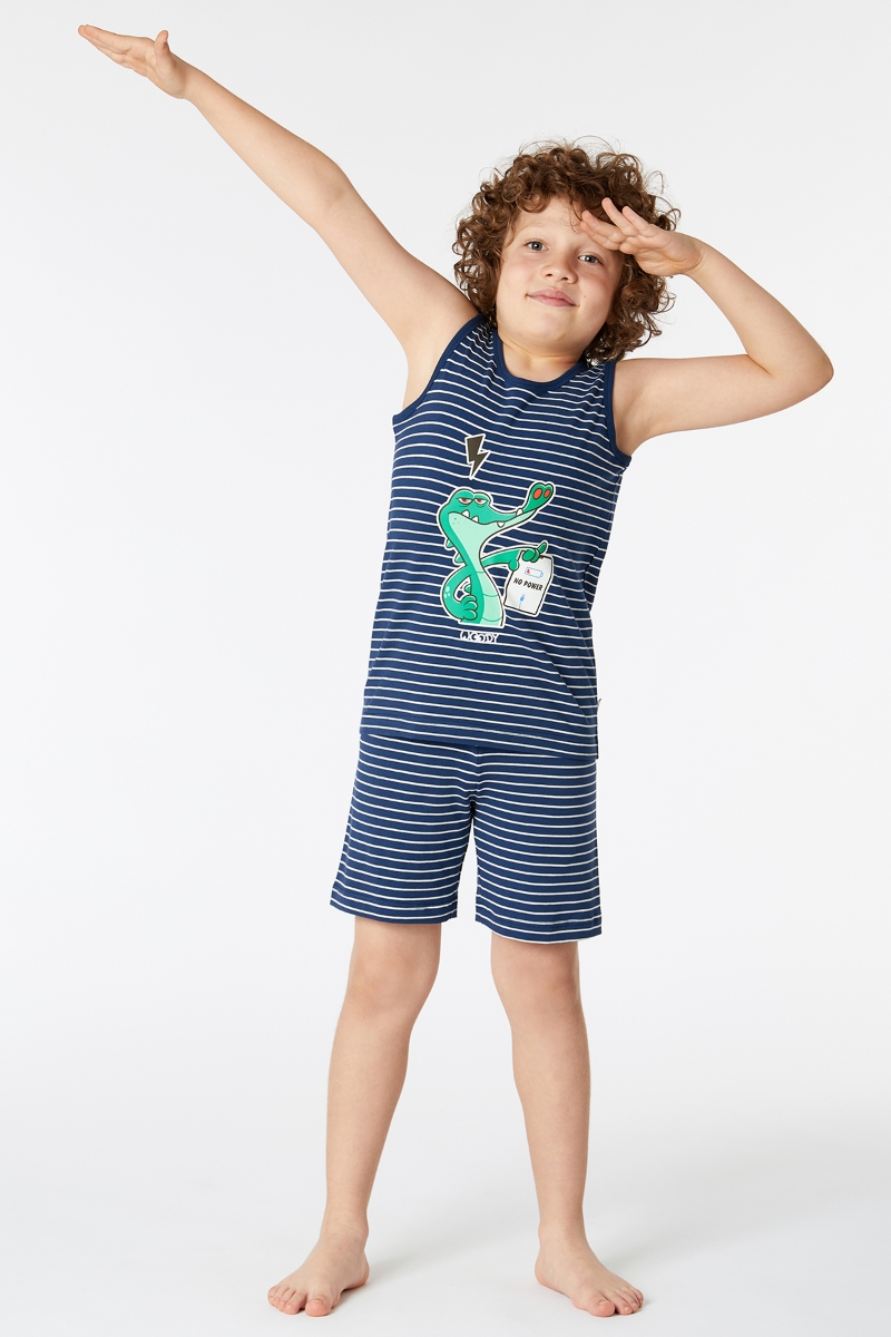 - 2-8 Yaş Erkek Çocuk Pijama-Pzc - 981-Krokodil Temalı Lacivert Çizgili