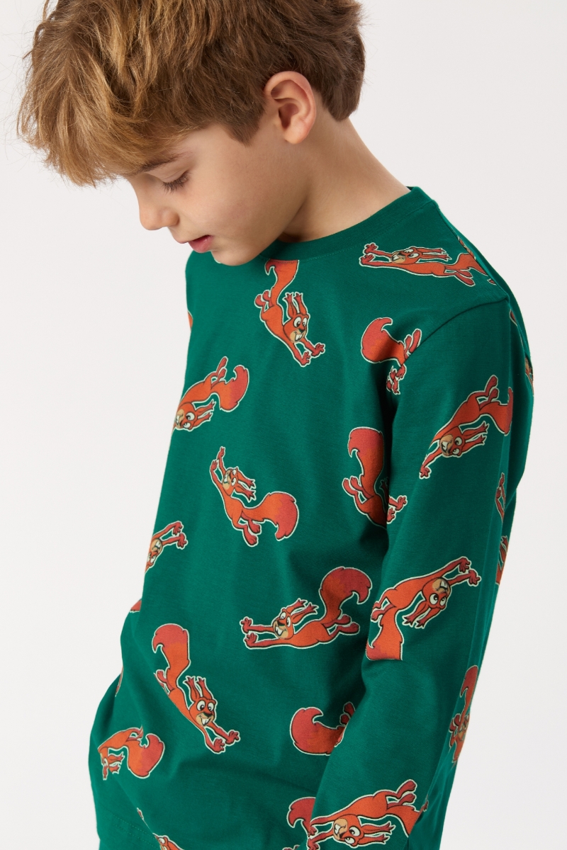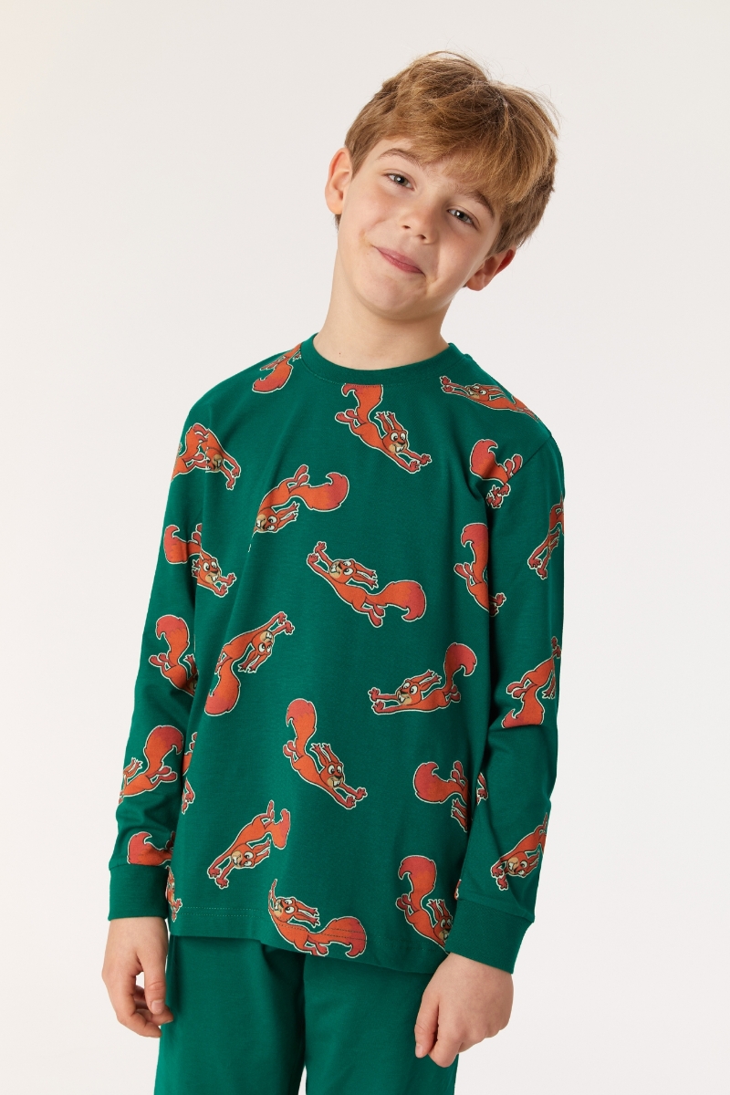 - 2-8 Yaş Erkek Çocuk Pijama-Pzl - 904-Sincap Baskılı Nefti Yeşili