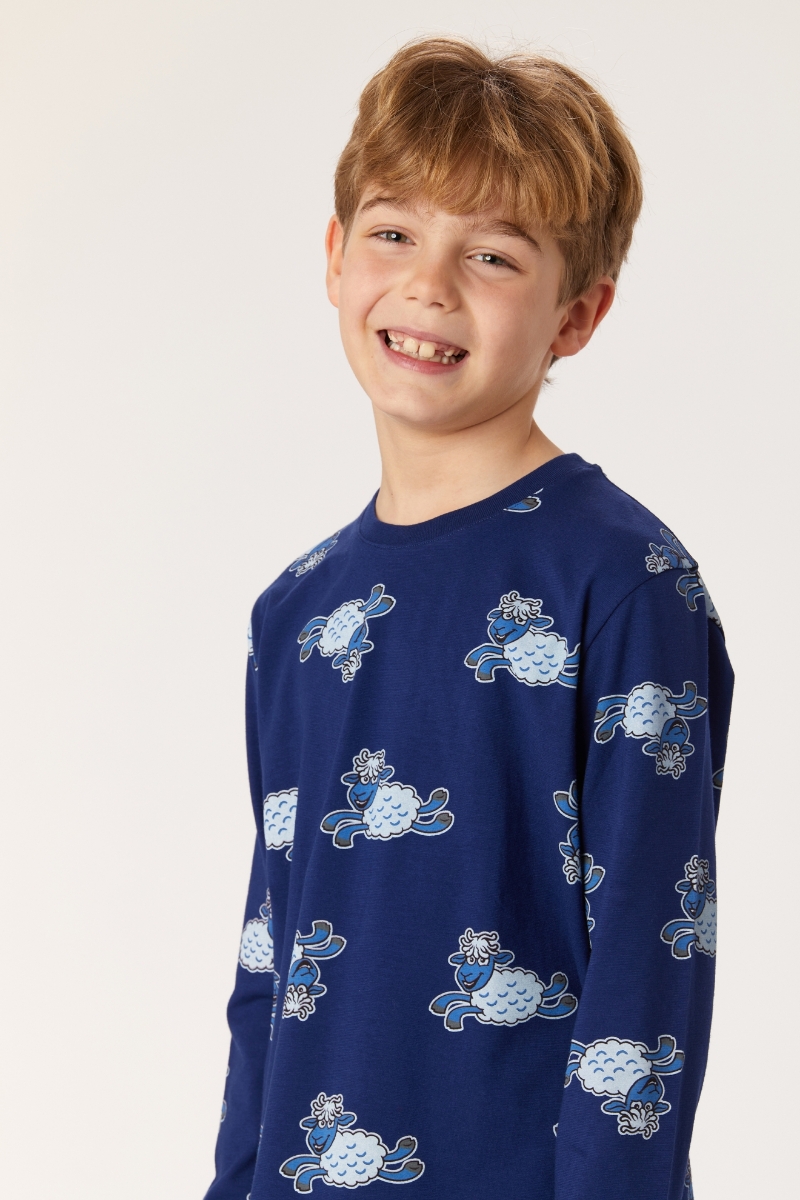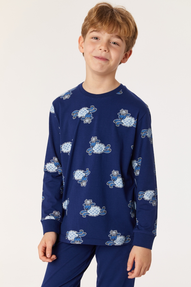 - 2-8 Yaş Erkek Çocuk Pijama-Pzl - 917-Koyun Temalı Lacivert
