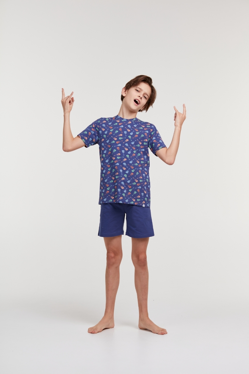 - 2-8 Yaş Erkek Çocuk Pijama-Qrs - 968-Enstrüman Baskılı Mavi