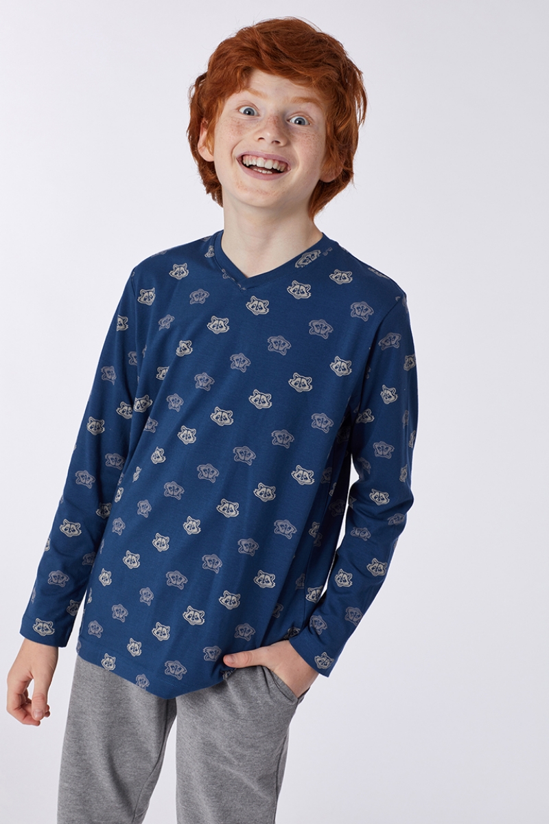 - 2-8 Yaş Erkek Çocuk Pijama-Qvl - 933-Rakun Baskılı Nehir Yeşili