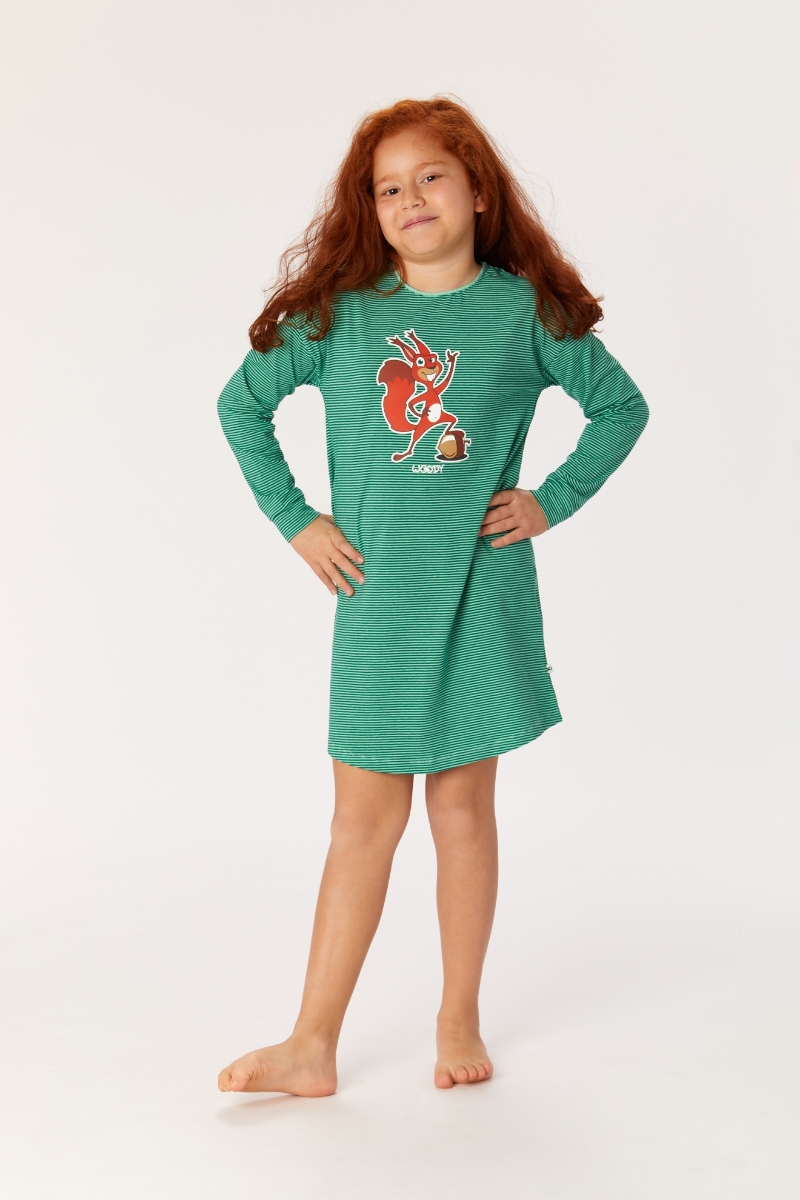 - 2-8 Yaş Kız Çocuk Gecelik-Dzf - 915-Sincap Temalı Çizgili Yeşil