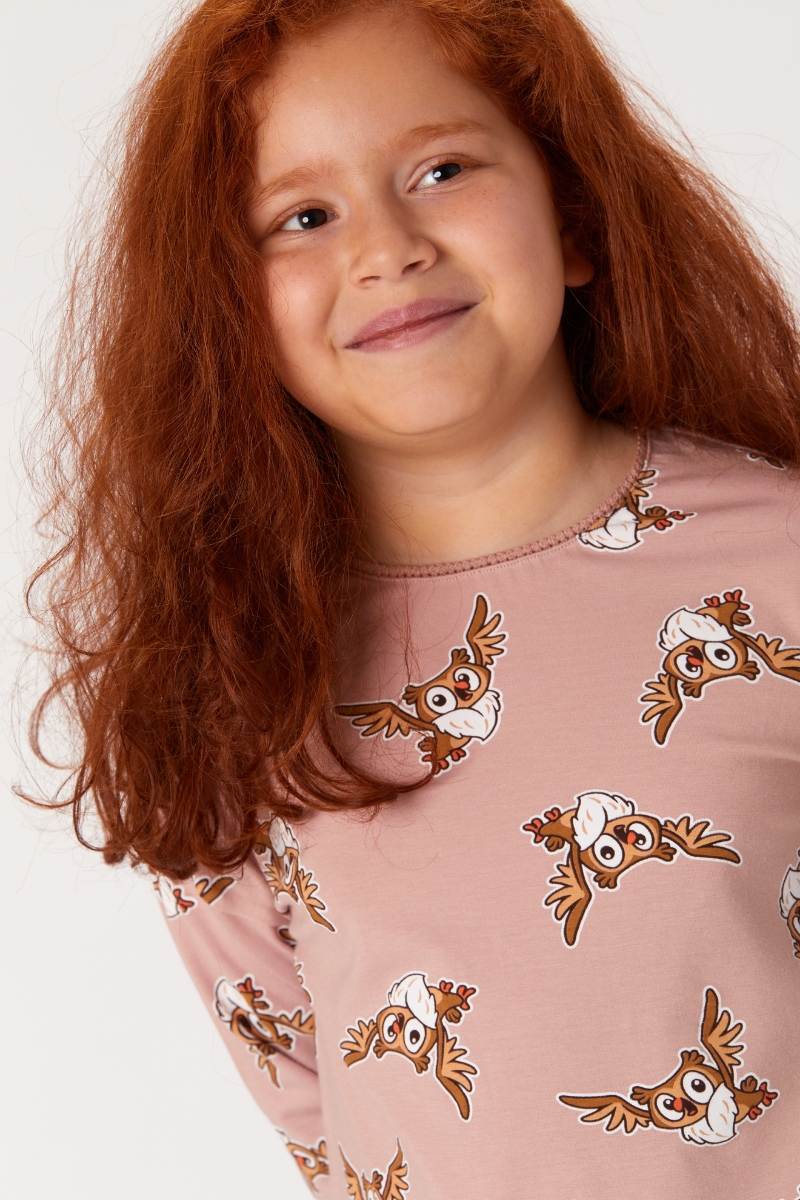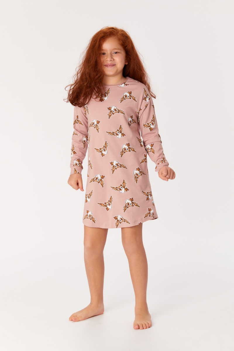 - 2-8 Yaş Kız Çocuk Gecelik-Dzf - 932-Baykuş Baskılı Vizon Pembe