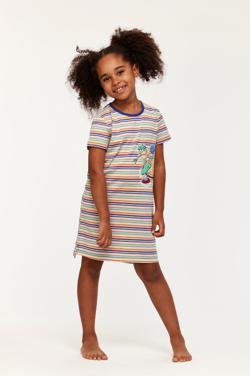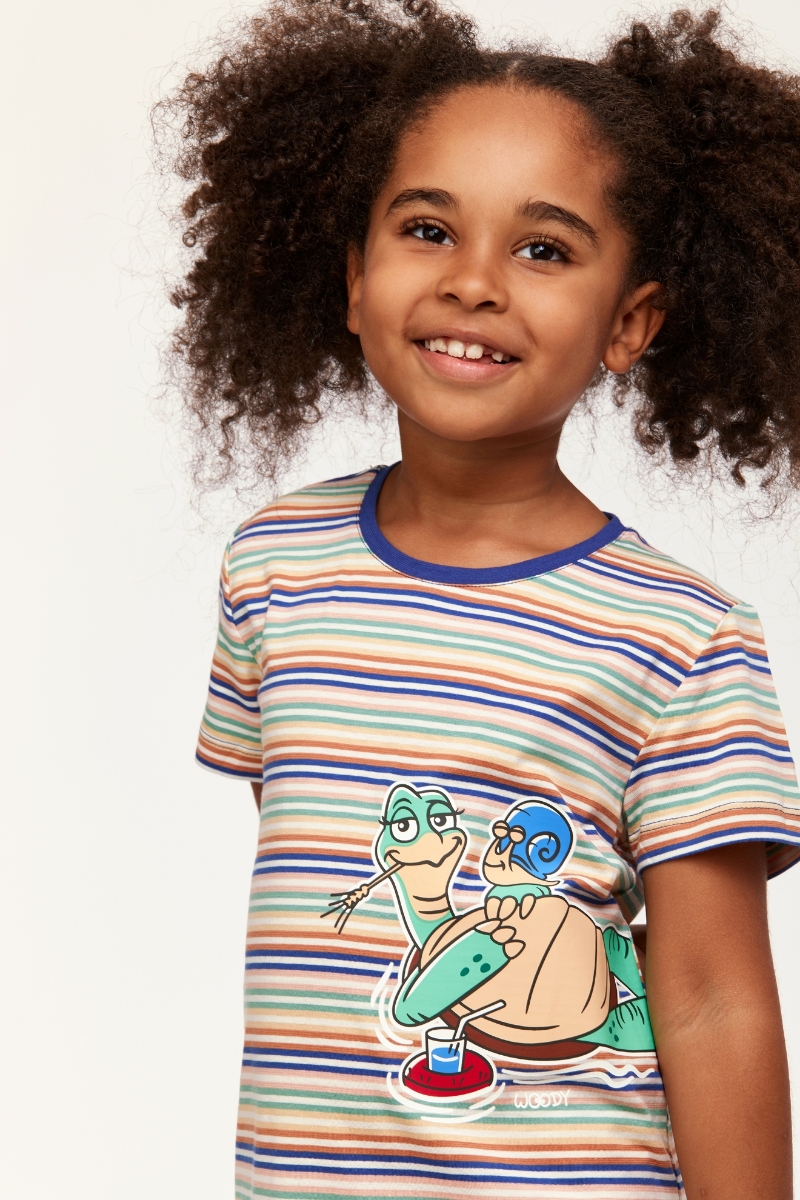 - 2-8 Yaş Kız Çocuk Gecelik-Tsl - 906-Kaplumbağa Temalı Çizgili Turuncu