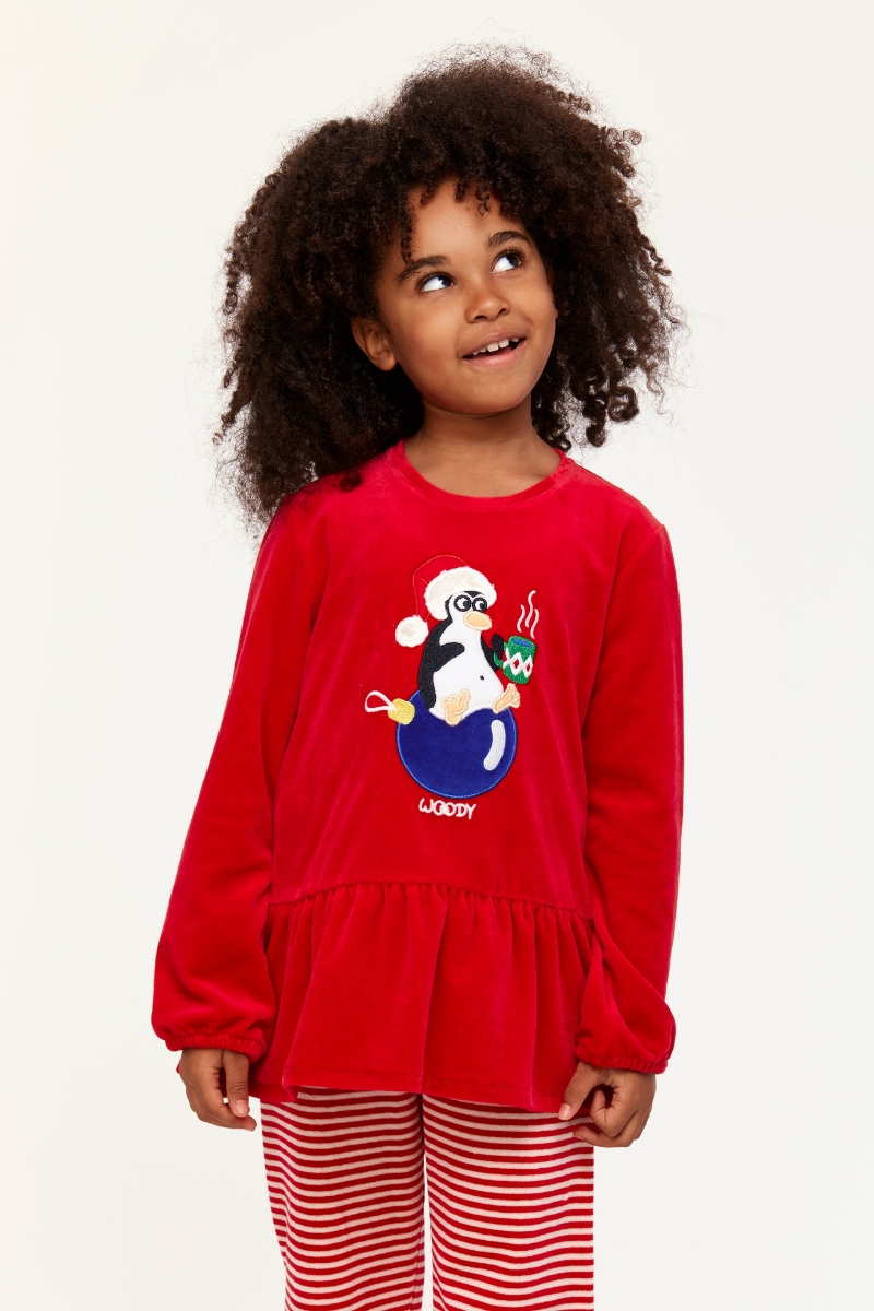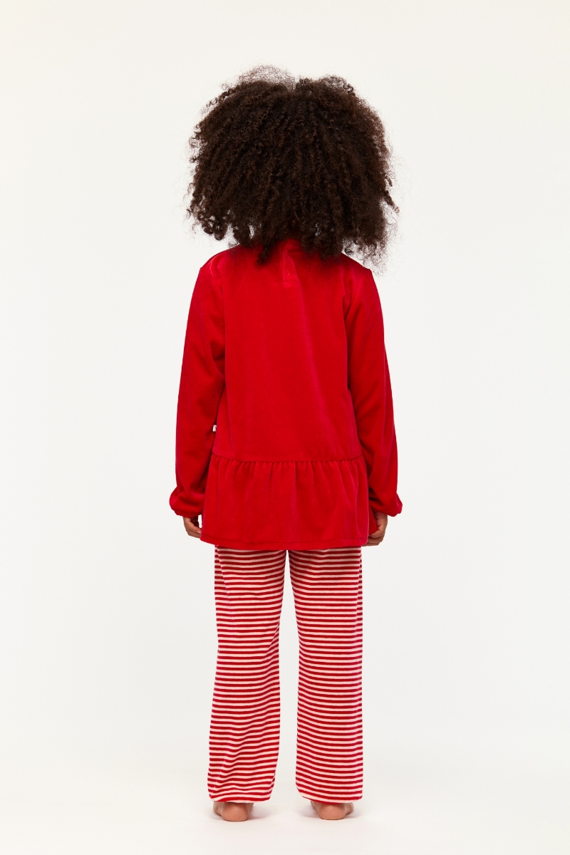 - 2-8 Yaş Kız Çocuk Kadife Pijama-Cpk - 407-Yeni Yıl Kırmızısı