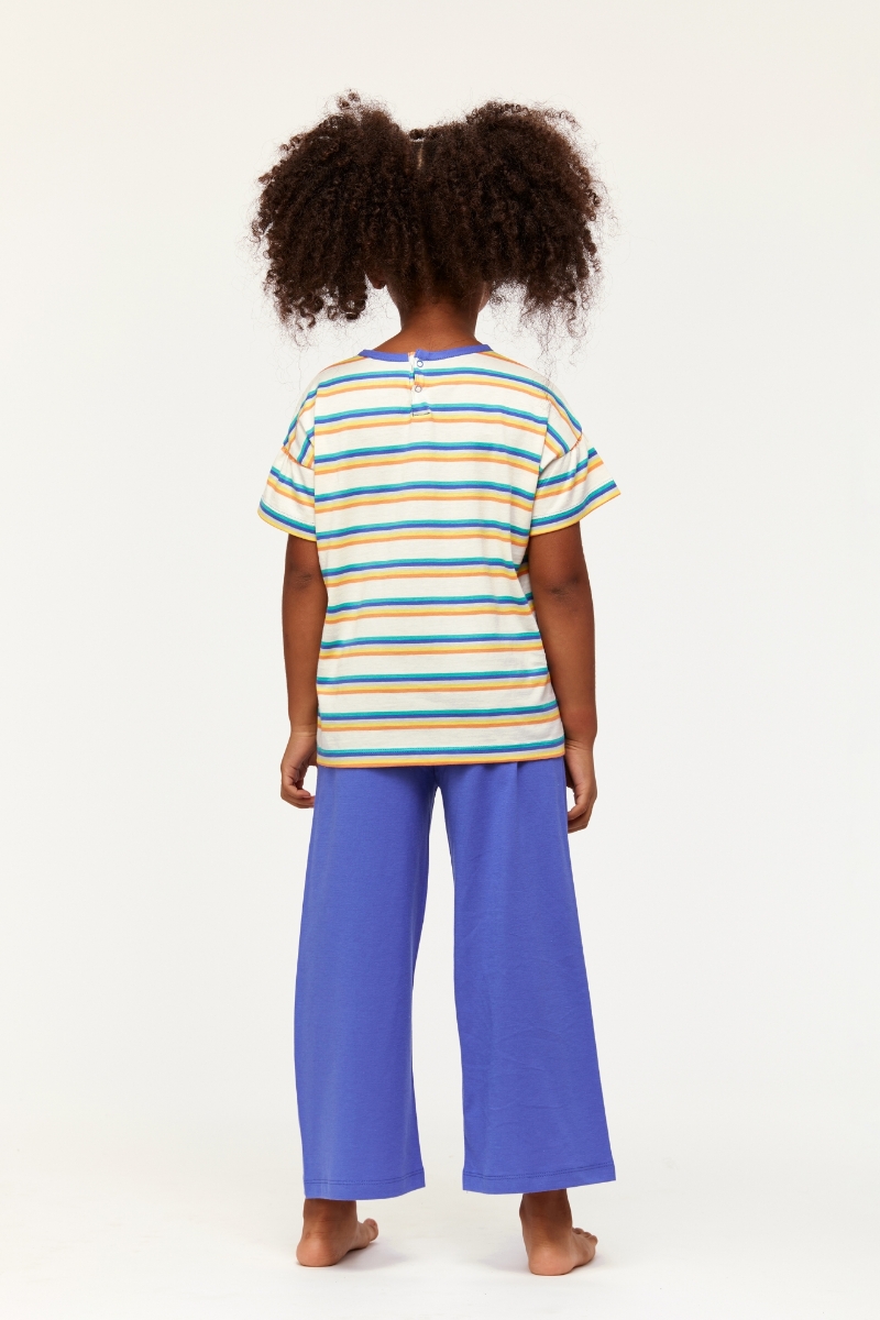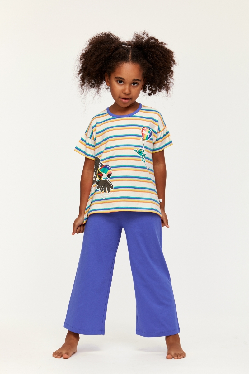 - 2-8 Yaş Kız Çocuk Pijama-Bsk - 908-Tukan Temalı Çizgili Mavi
