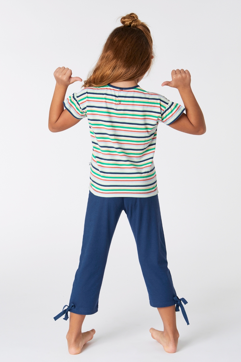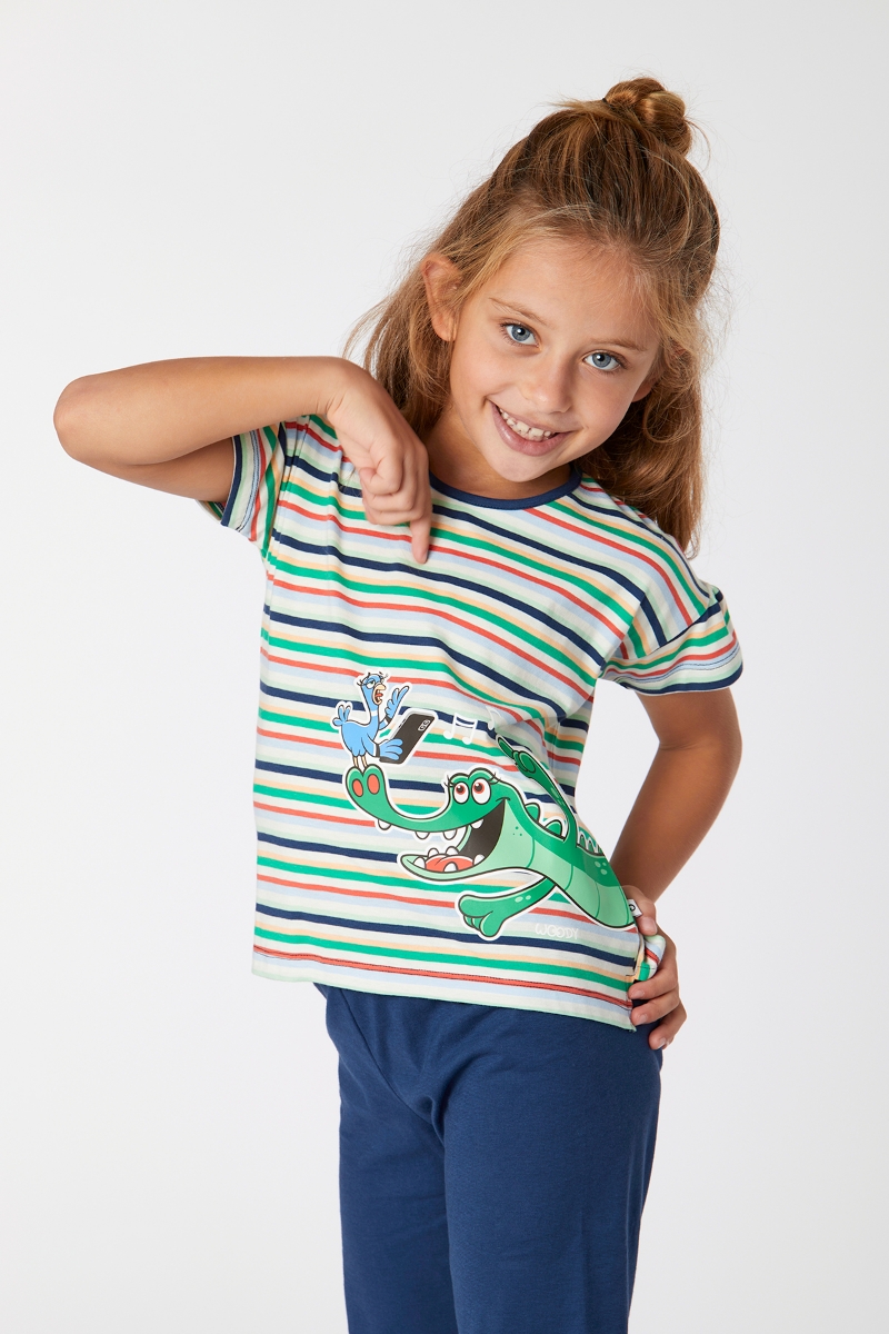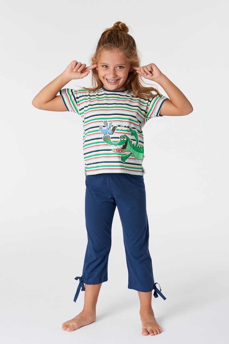 - 2-8 Yaş Kız Çocuk Pijama-Bsk - 910-Krokodil Temalı Çizgili Yeşil