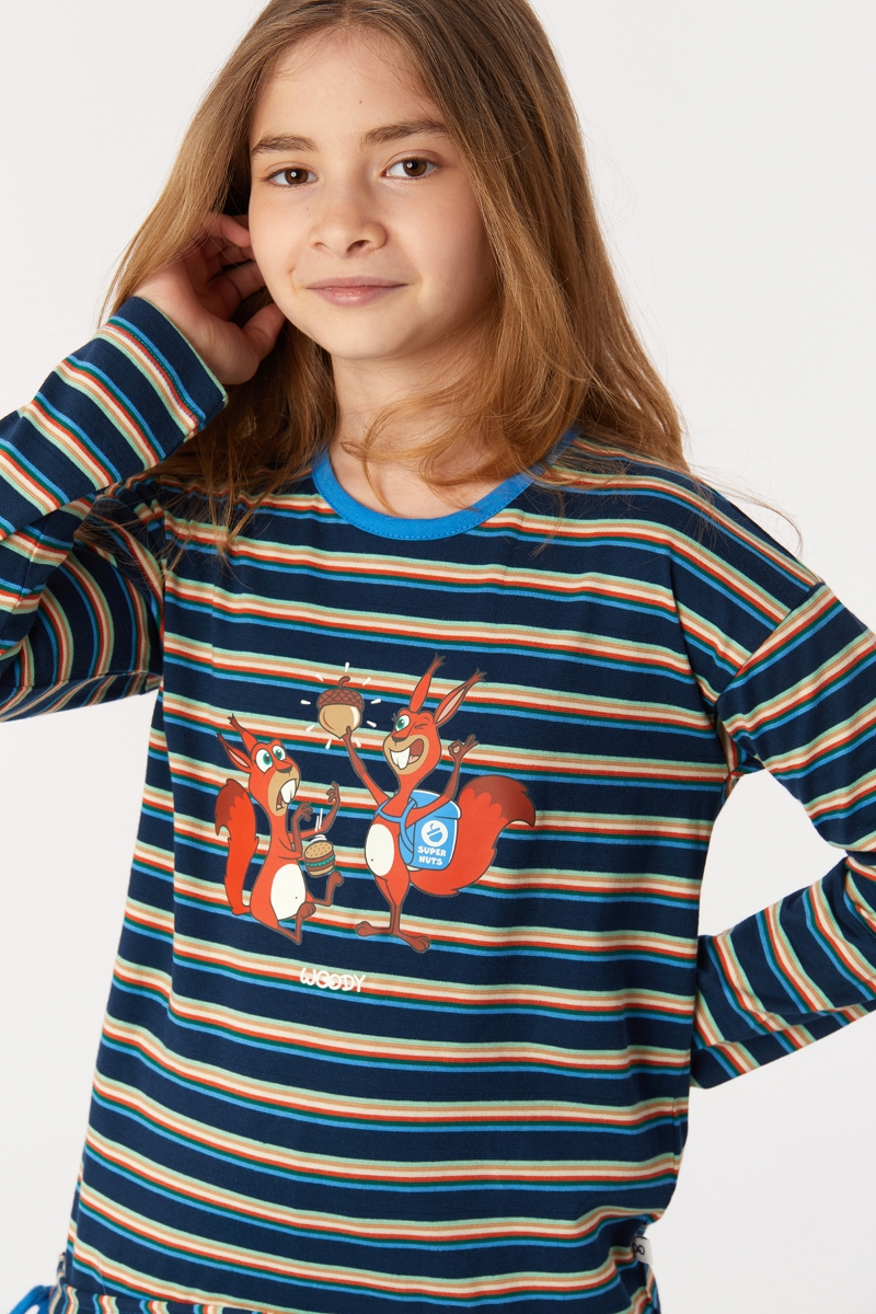 - 2-8 Yaş Kız Çocuk Pijama-Bsl - 911-Sincap Temalı Çok Renkli Lacivert