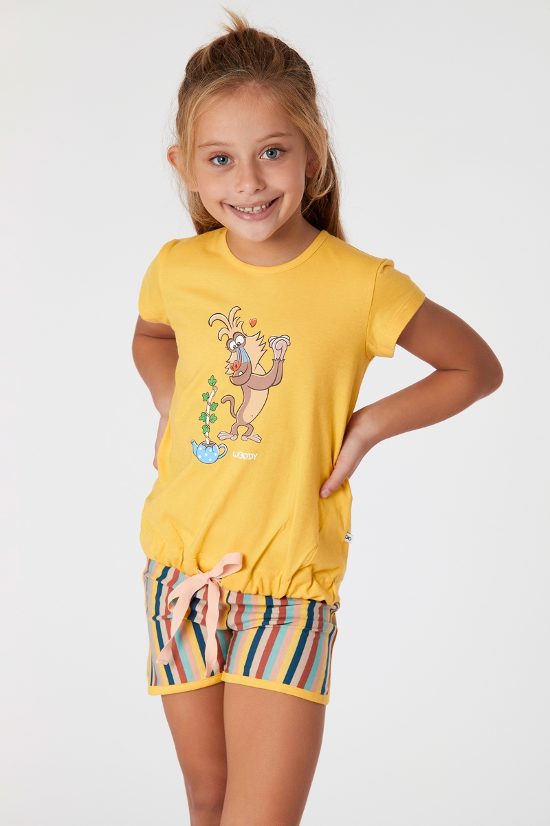 - 2-8 Yaş Kız Çocuk Pijama-Bst - 614-Limon Sarı