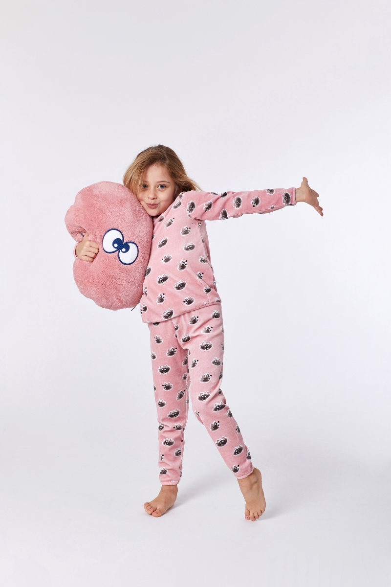 - 2-8 Yaş Kız Çocuk Pijama-Pdl - 929-Rakun Baskılı Pembe