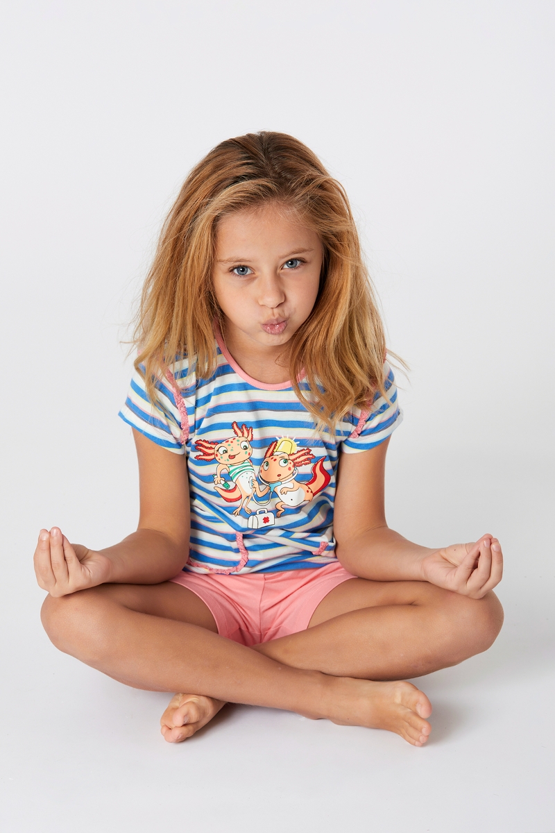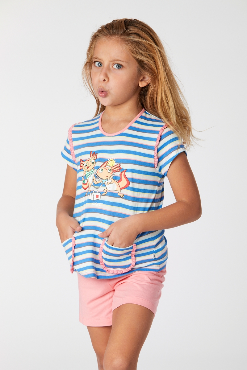 - 2-8 Yaş Kız Çocuk Pijama-Psg - 987-Semender Temalı Çizgili