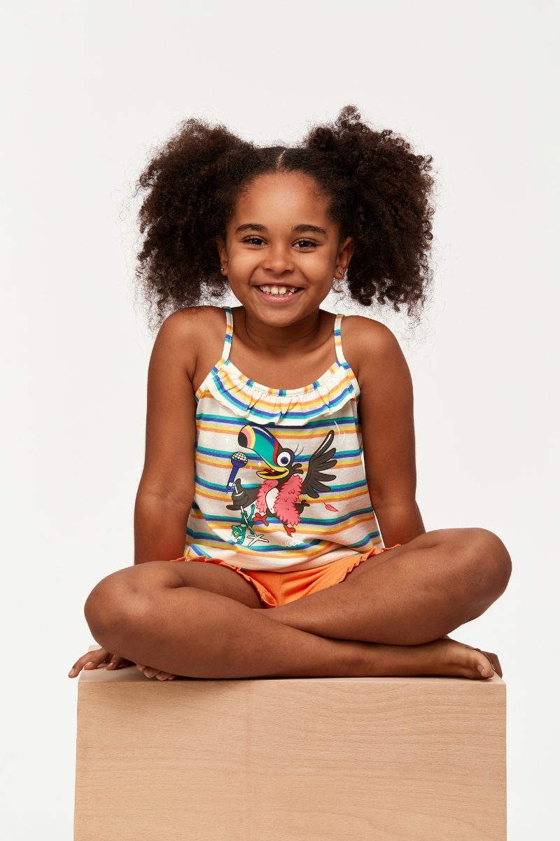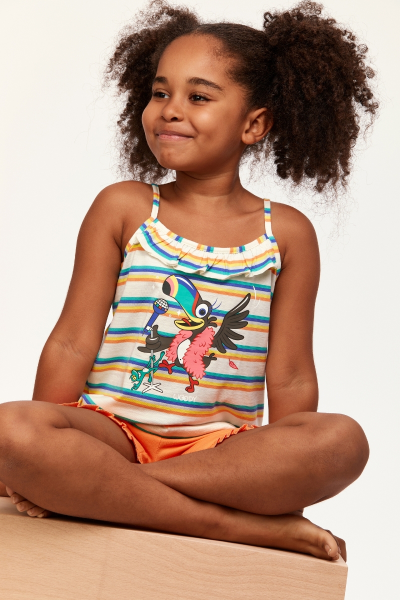 - 2-8 Yaş Kız Çocuk Pijama-Psp - 908-Tukan Temalı Çizgili Mavi
