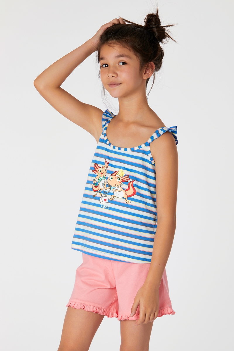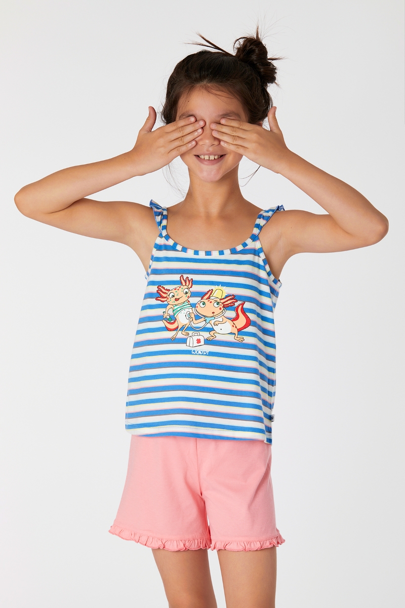 - 2-8 Yaş Kız Çocuk Pijama-Psp - 987-Semender Temalı Çizgili