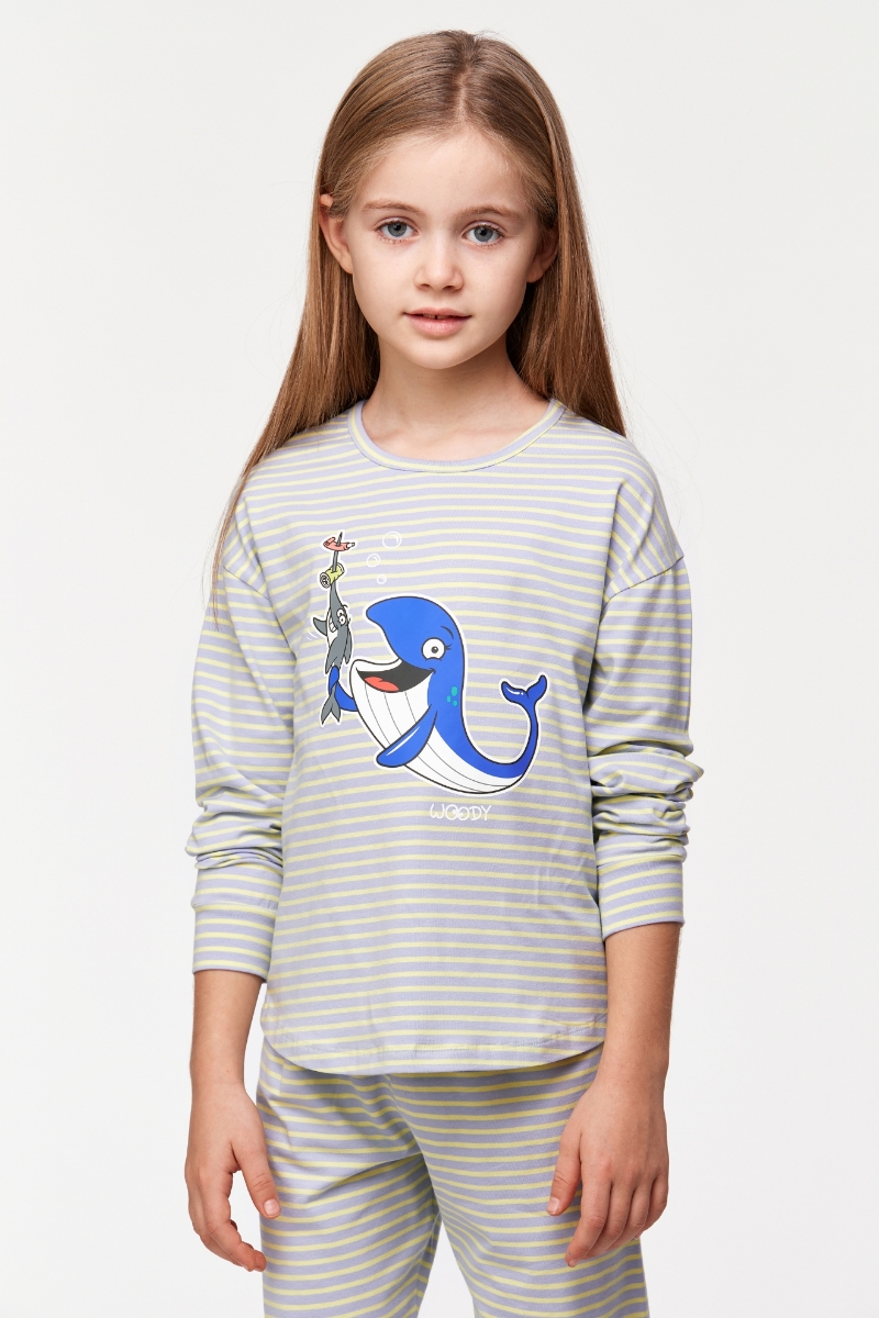 - 2-8 Yaş Kız Çocuk Pijama-Pzb - 916-Balina Temalı Çizgili Mavi