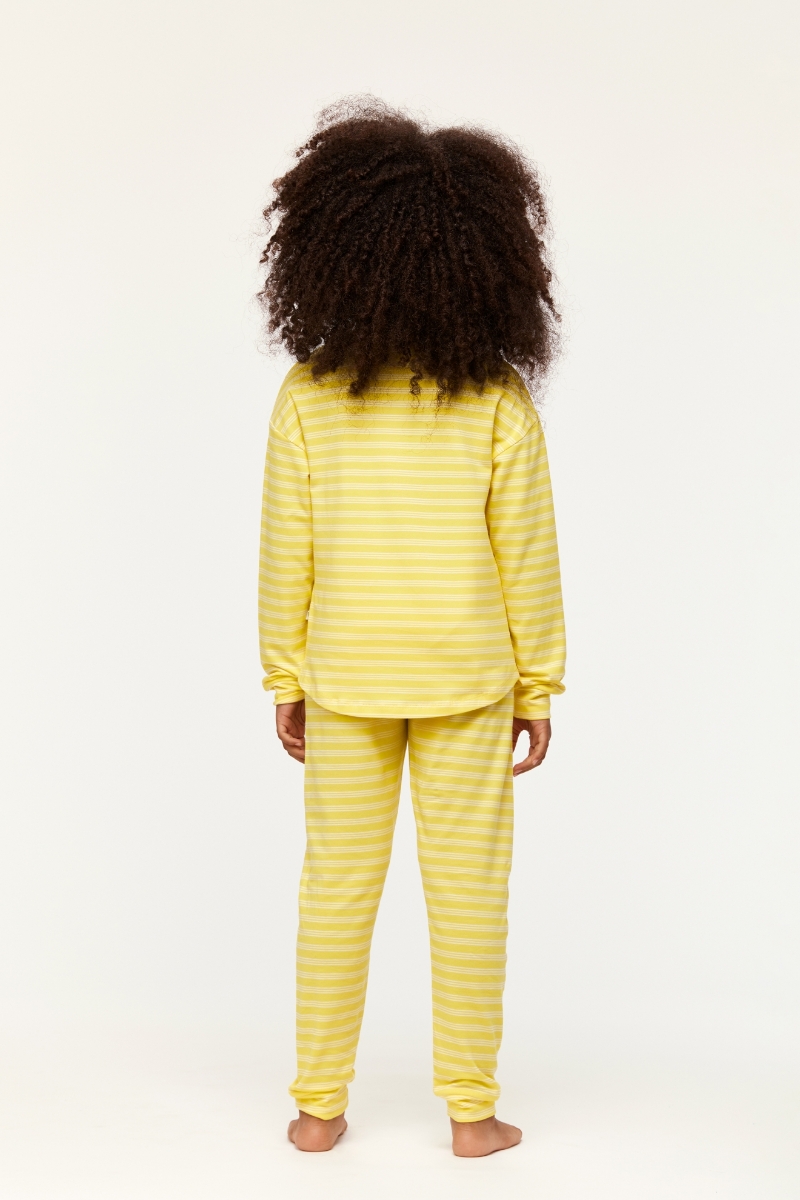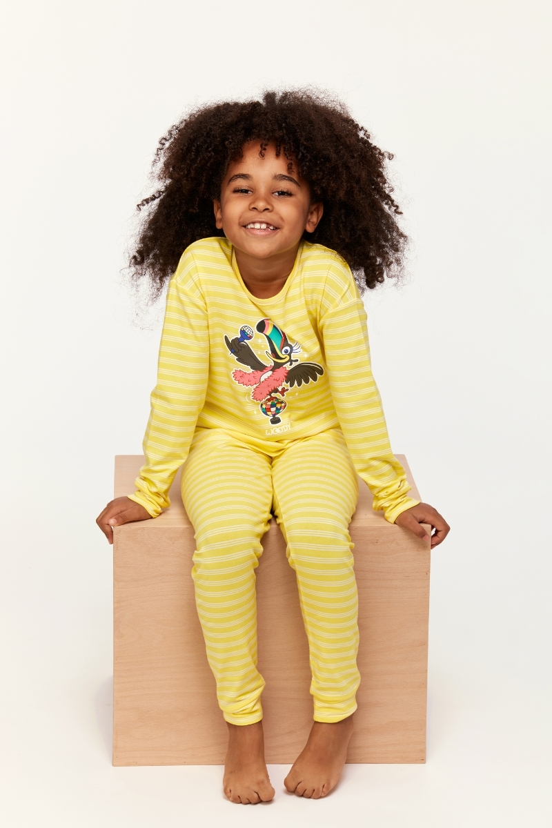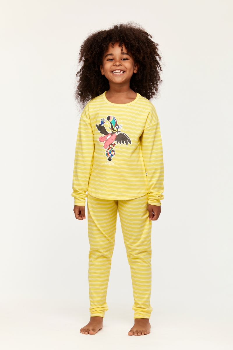 - 2-8 Yaş Kız Çocuk Pijama-Pzb - 918-Tukan Temalı Çizgili Sarı