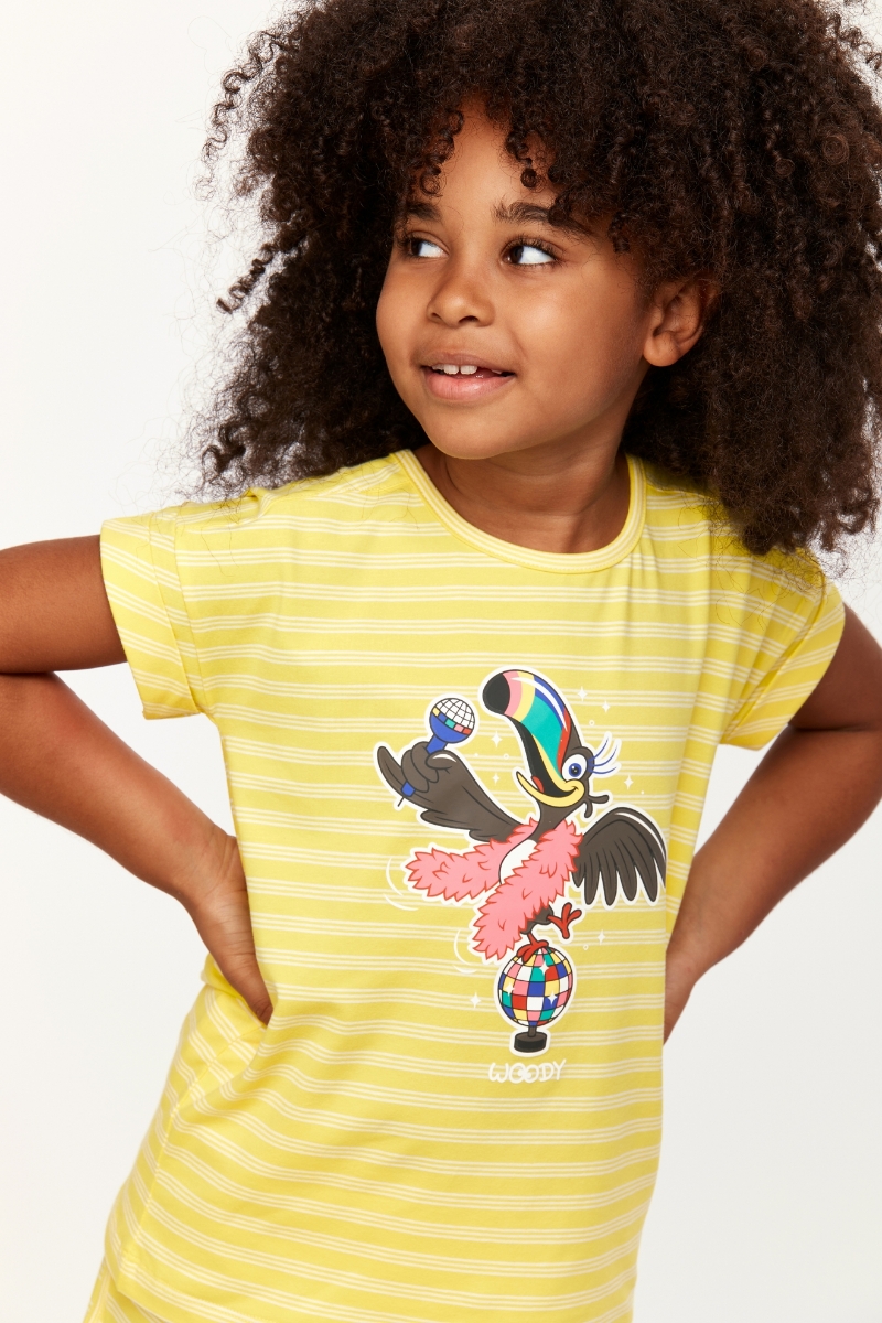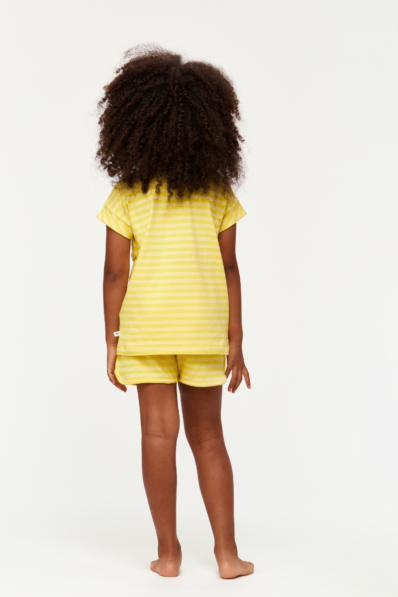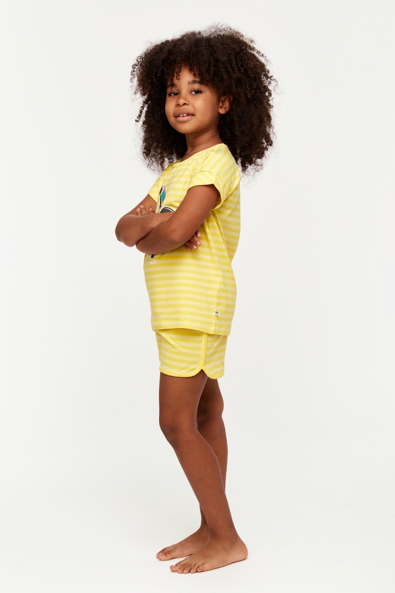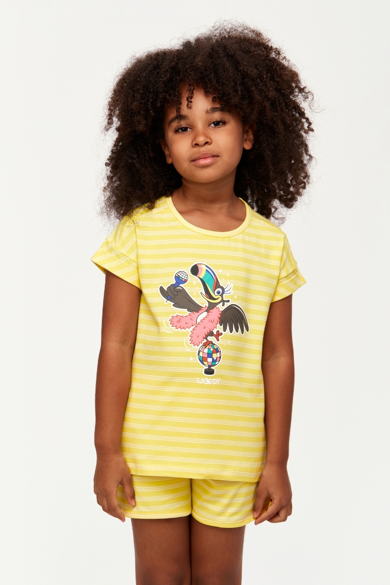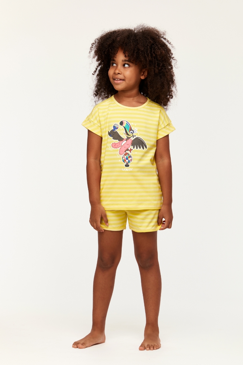- 2-8 Yaş Kız Çocuk Pijama-Pzg - 918-Tukan Temalı Çizgili Sarı
