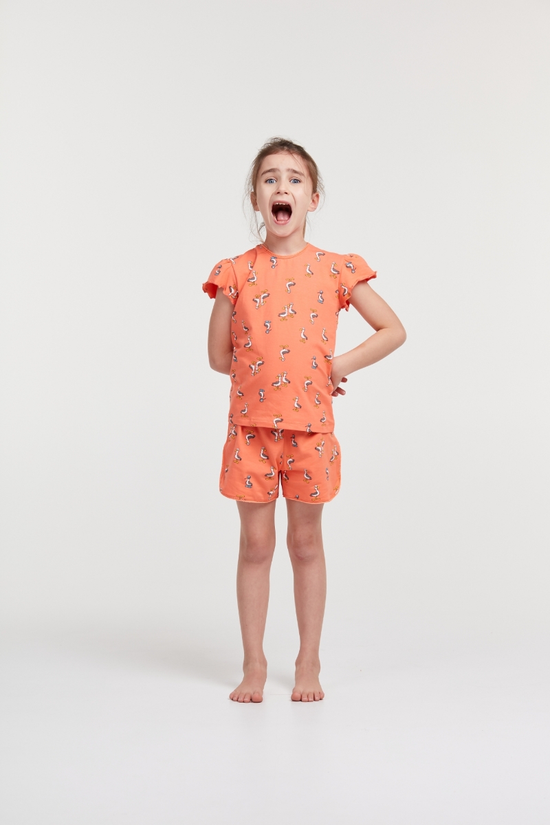 - 2-8 Yaş Kız Çocuk Pijama-Pzg - 952-Deniz Kuşu Baskılı Somon