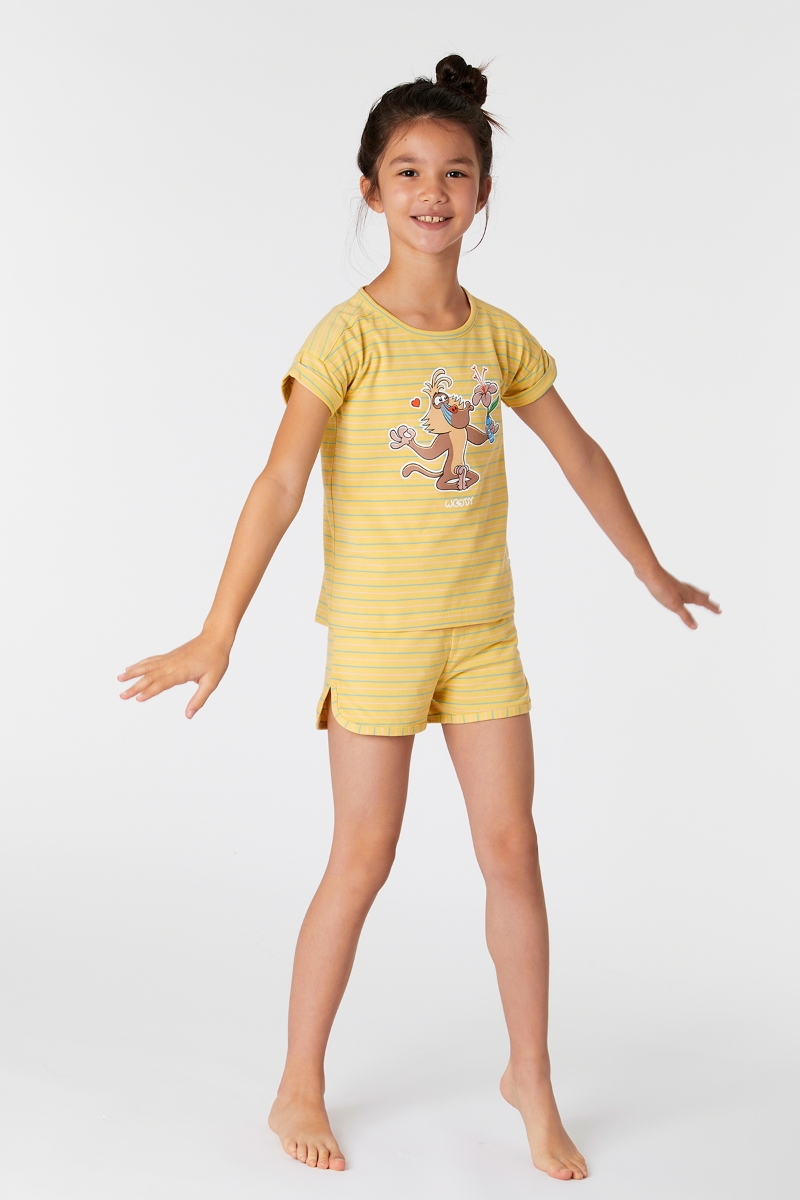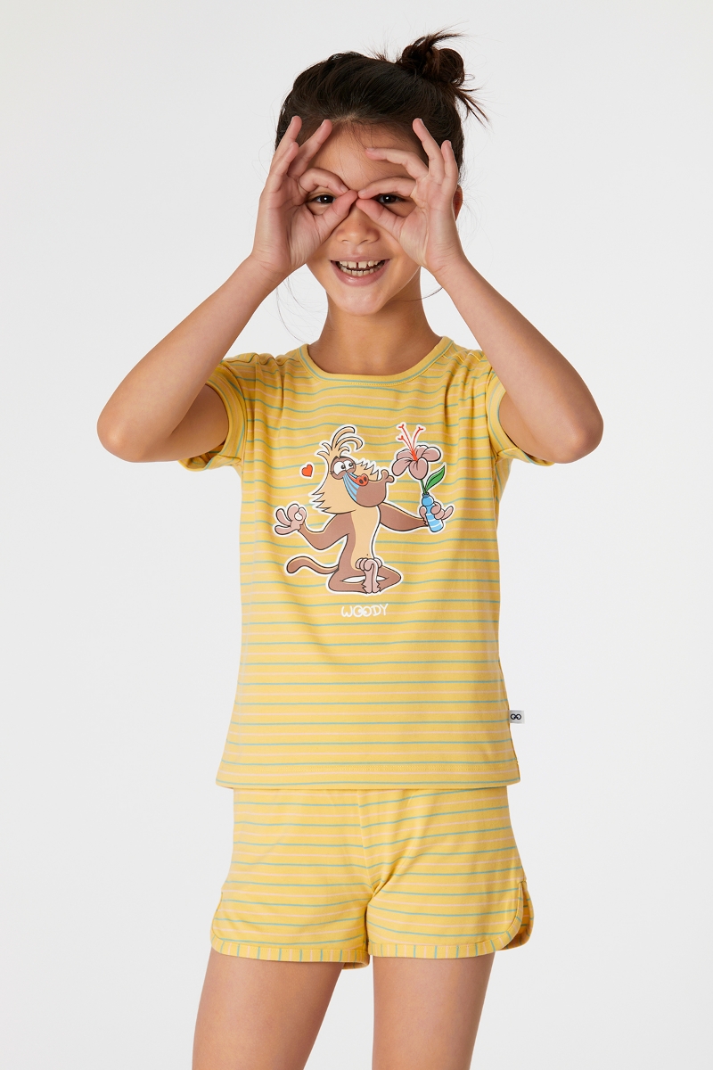 - 2-8 Yaş Kız Çocuk Pijama-Pzg - 964-Mandril Temalı Çizgili Sarı