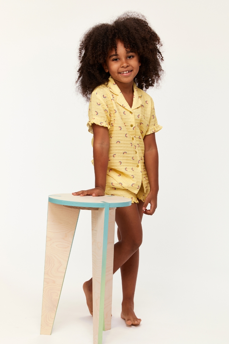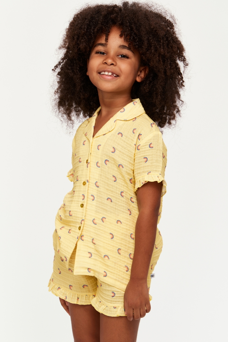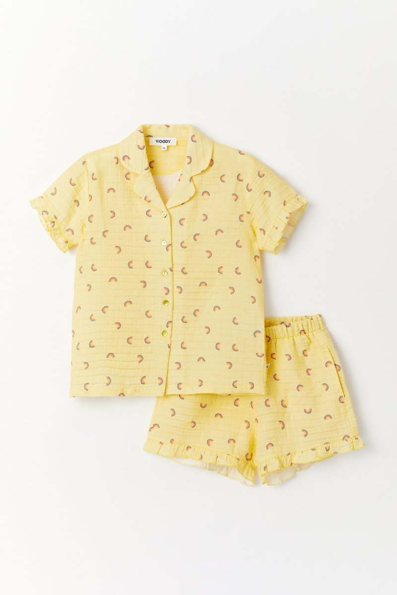 - 2-8 Yaş Kız Çocuk Pijama-Wpj - 940-Gökkuşağı Baskılı Sarı