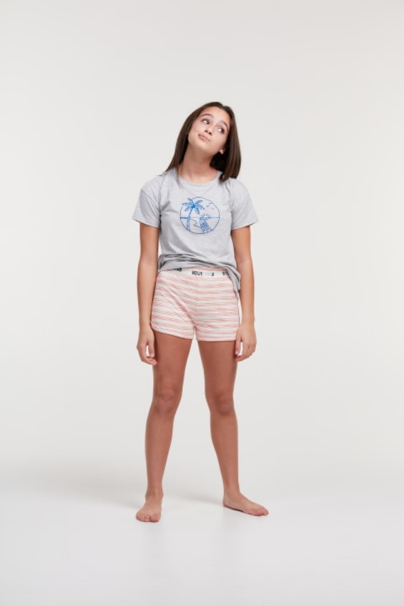 - 2-8 Yaş Kız Çocuk Pijama-Ypd - 142-Deniz Kuşu Temalı Gri Melanj