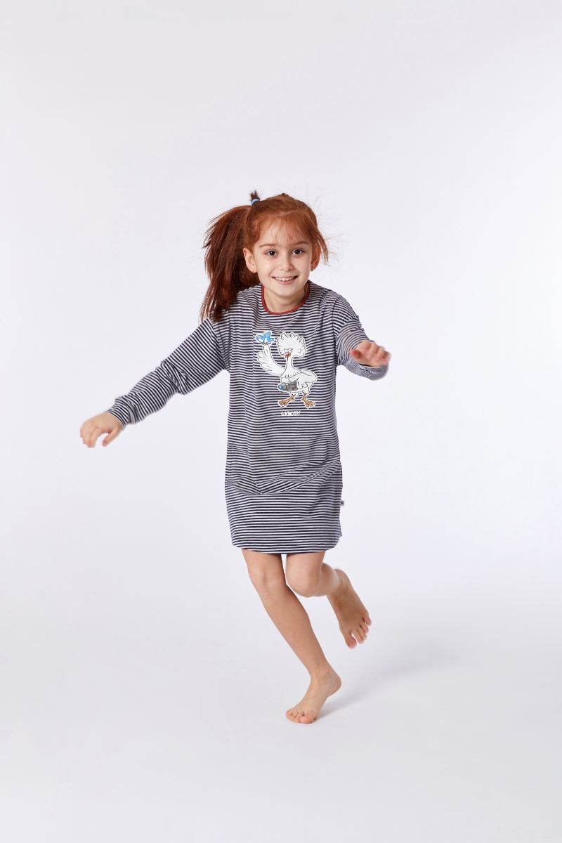 - 2-8 Yaş Kız Çocuk Gecelik-Dzf - 916-Boğa Temalı Çizgili Lacivert