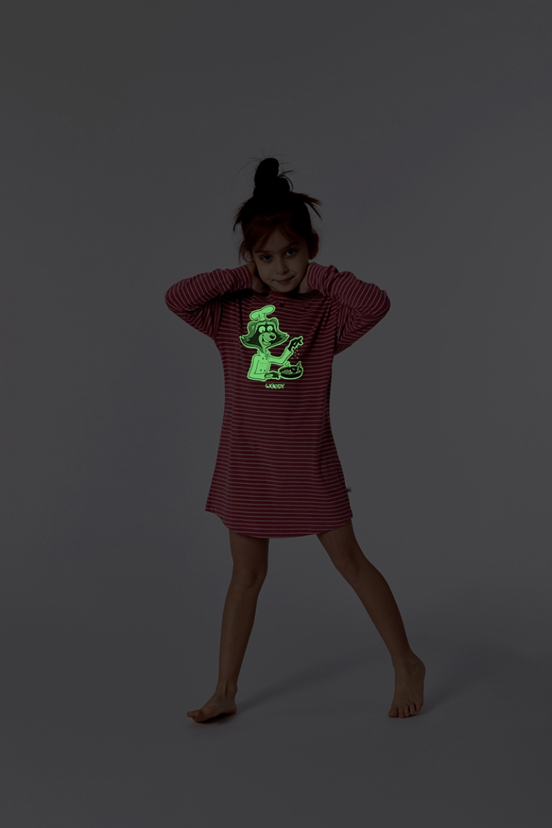 - 2-8 Yaş Kız Çocuk Gecelik-Dzf - 923-Rakun Temalı Çizgili Kırmızı