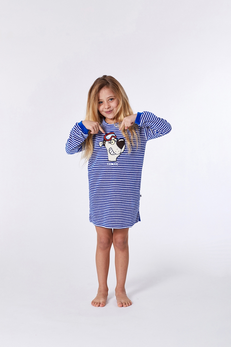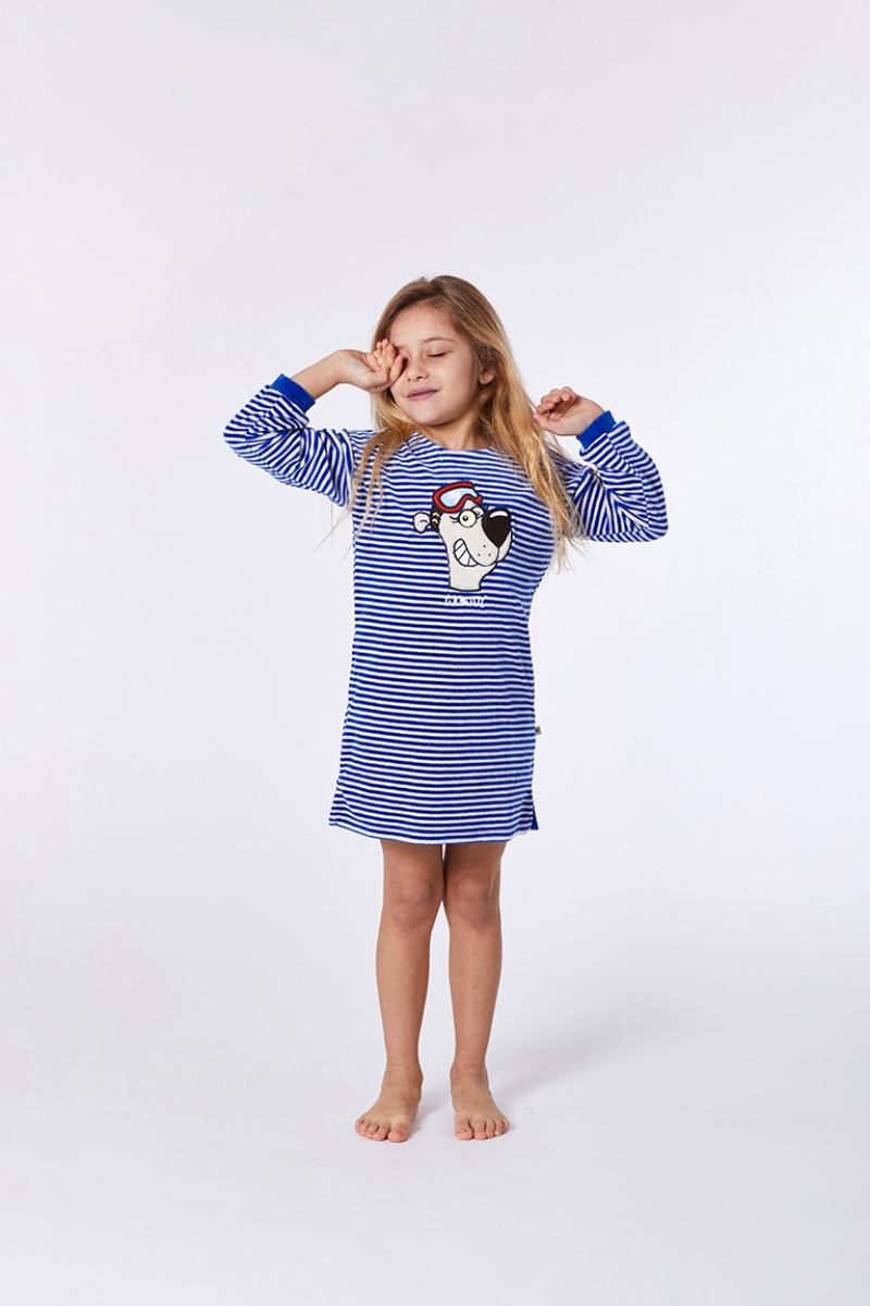 - 2-8 Yaş Kız Çocuk Gecelik-Nıl - 912-Kutup Ayısı Temalı Çizgili Ekru