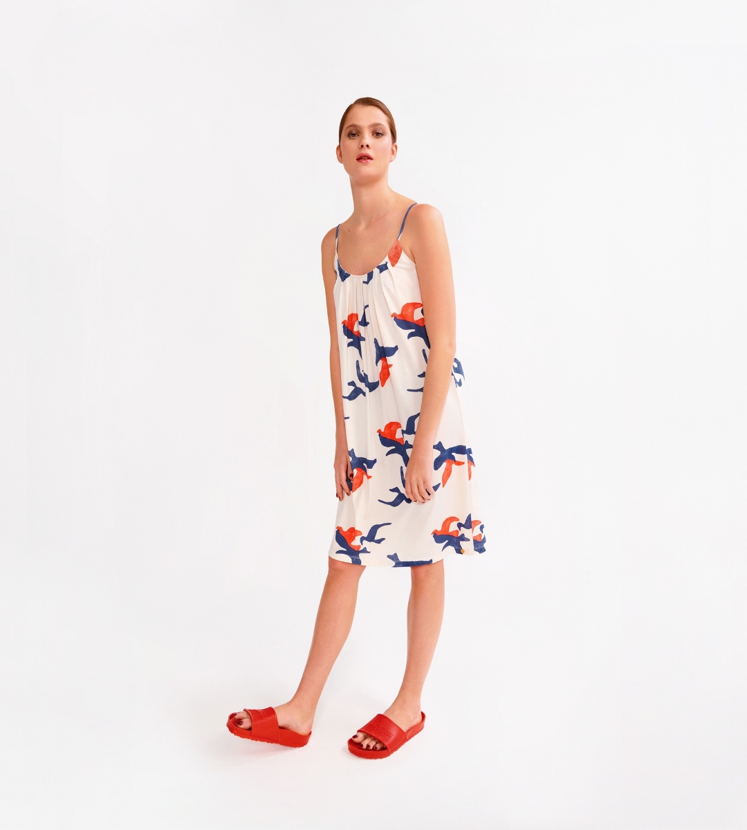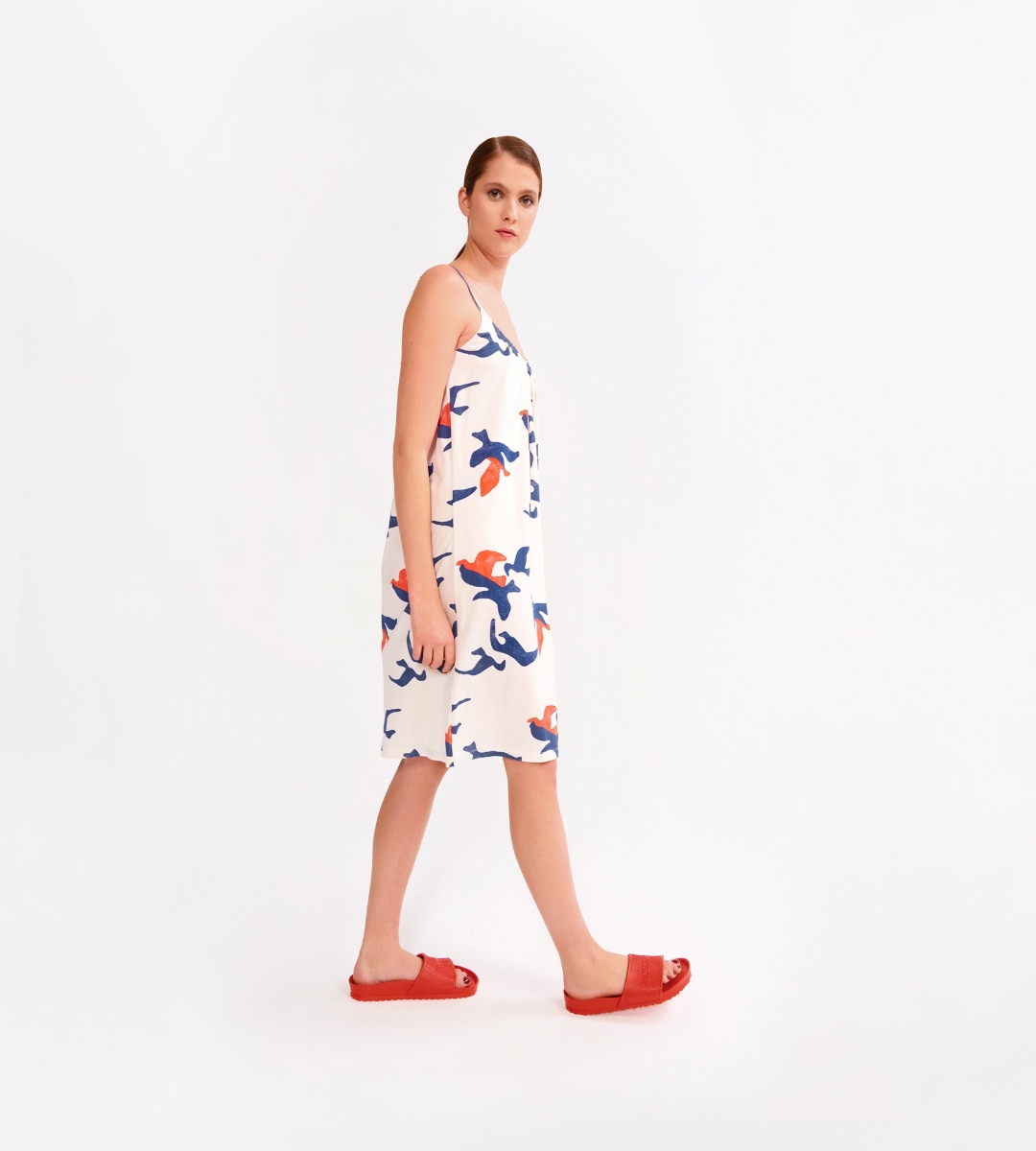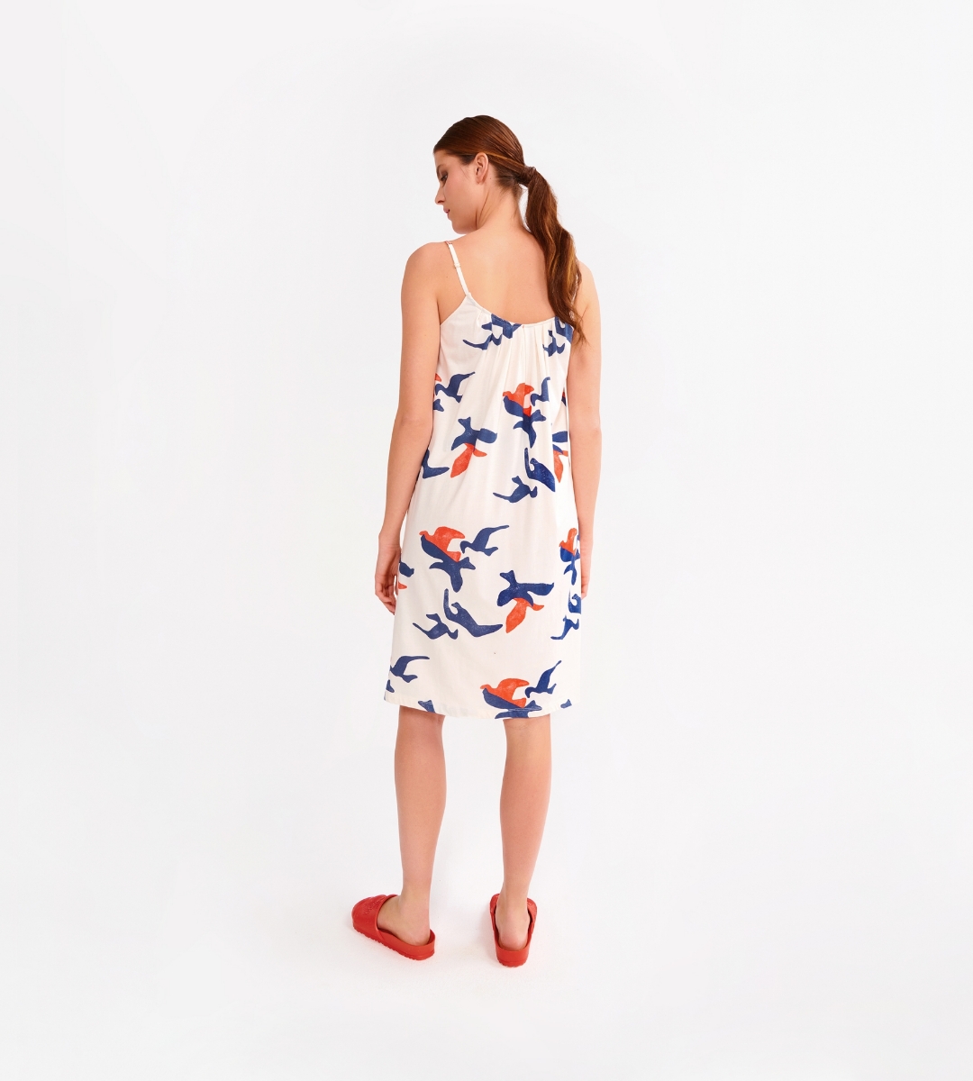 - Askılı büzgü detaylı elbise-Lde - 975-Uçan Kuşlar