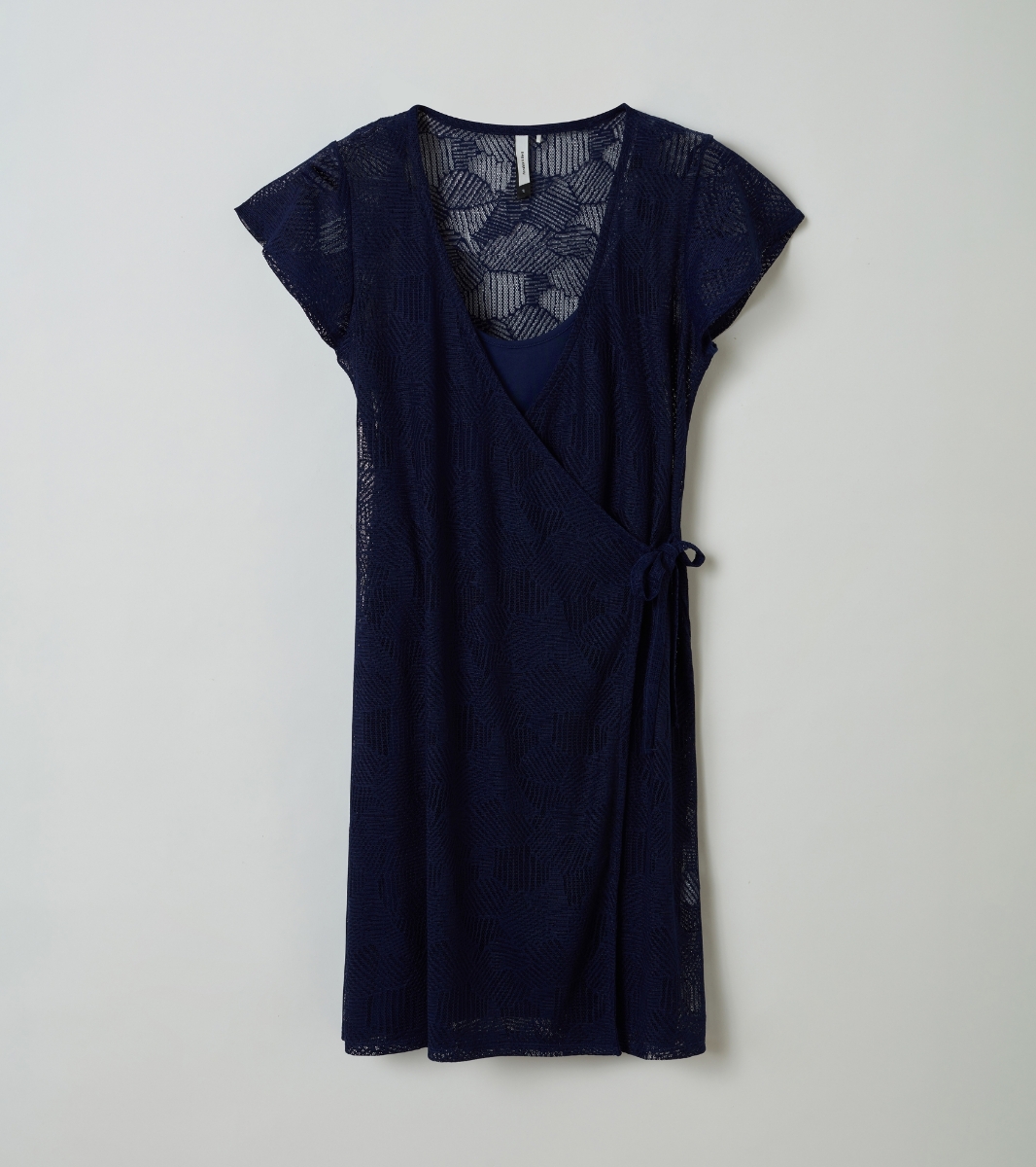 - Astarlı kruvaze dantel elbise-Ldı - 878-Kozmik Lacivert