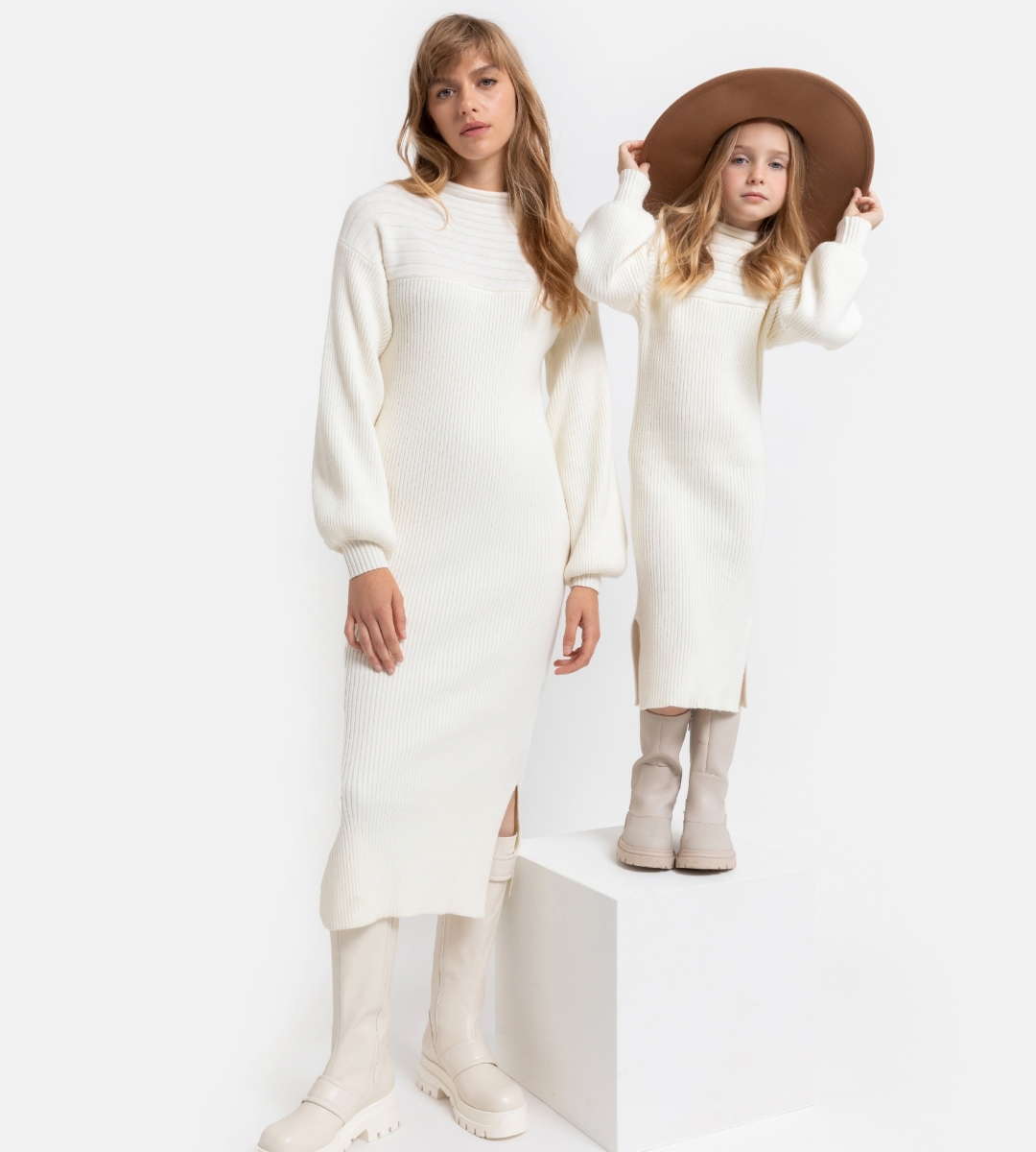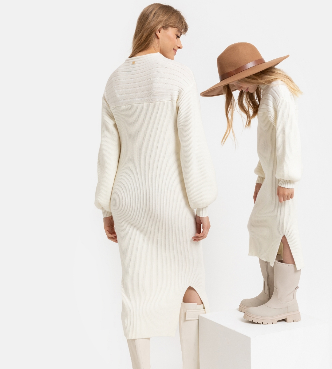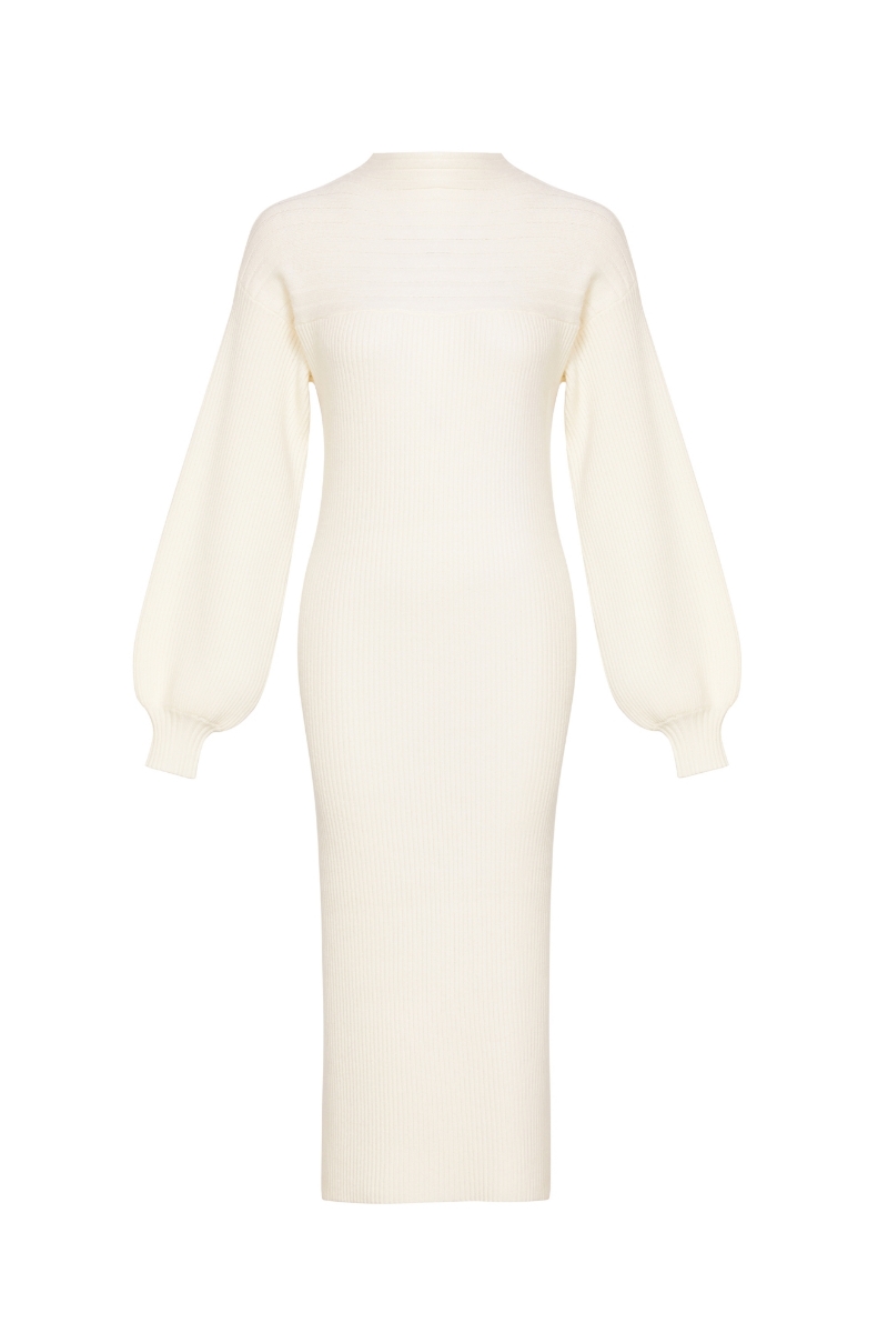 - Balıkçı yaka triko uzun elbise-Mda - 169-Vanilya Rengi