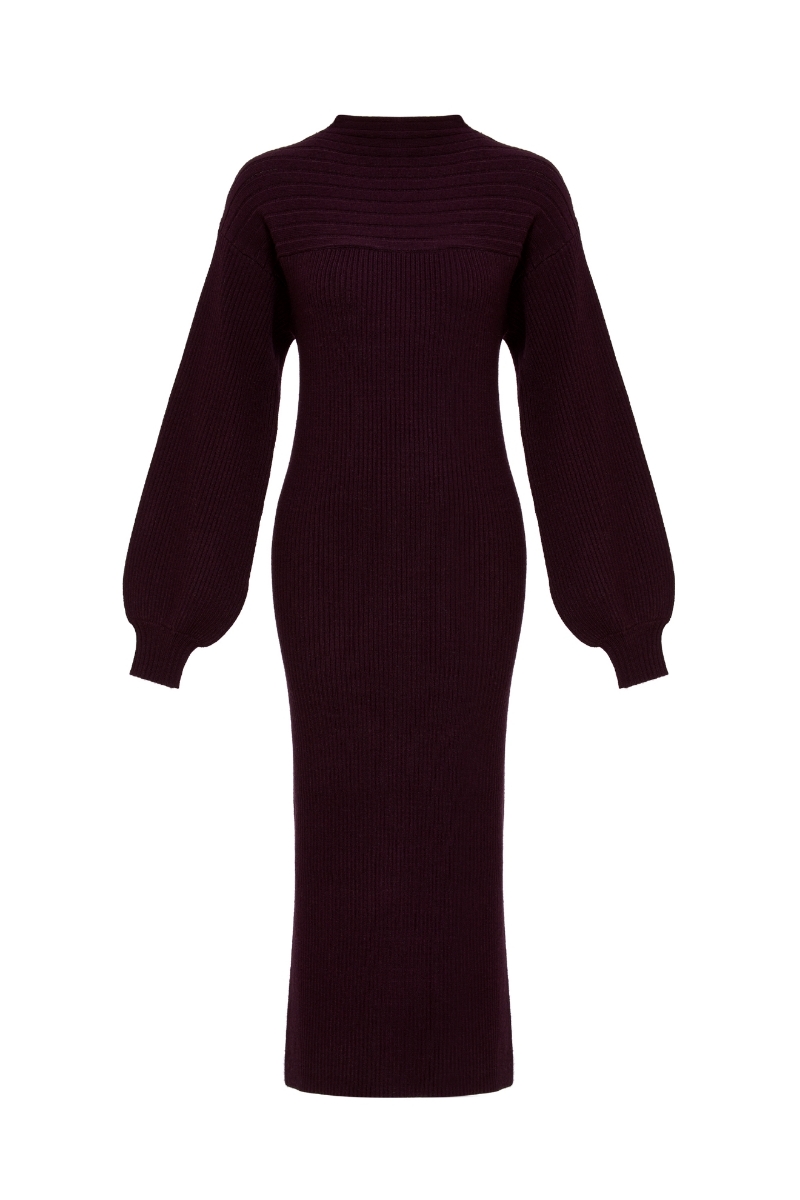 - Balıkçı yaka triko uzun elbise-Mda - 333-Şarap Rengi