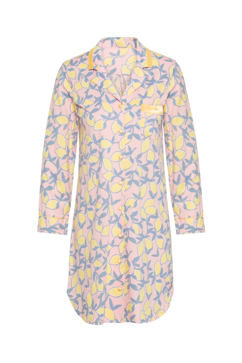 - Boydan Düğmeli Uzun Kollu Elbise-Xdh - 985-Limon Baskılı Yeşil