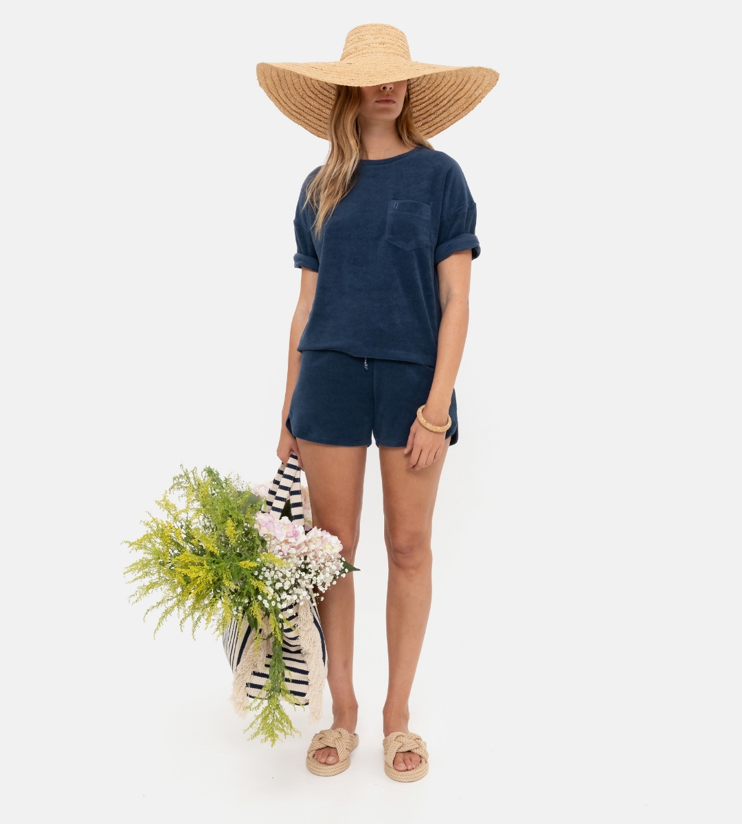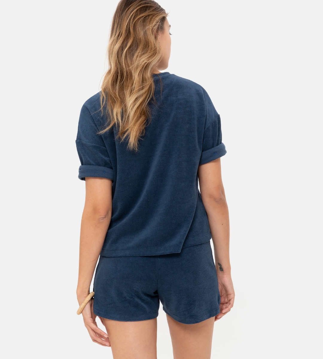 - Cep detaylı havlu şortlu pijama takımı-The - 895-Deniz Kuşu Temalı Lacivert