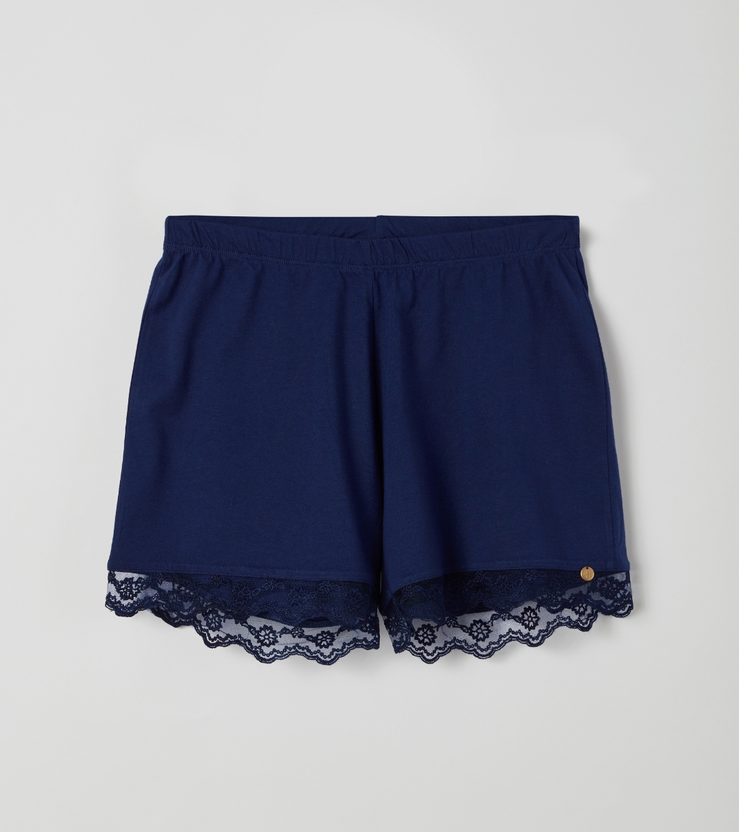 - Dantel detaylı şort-Lpo - 878-Kozmik Lacivert