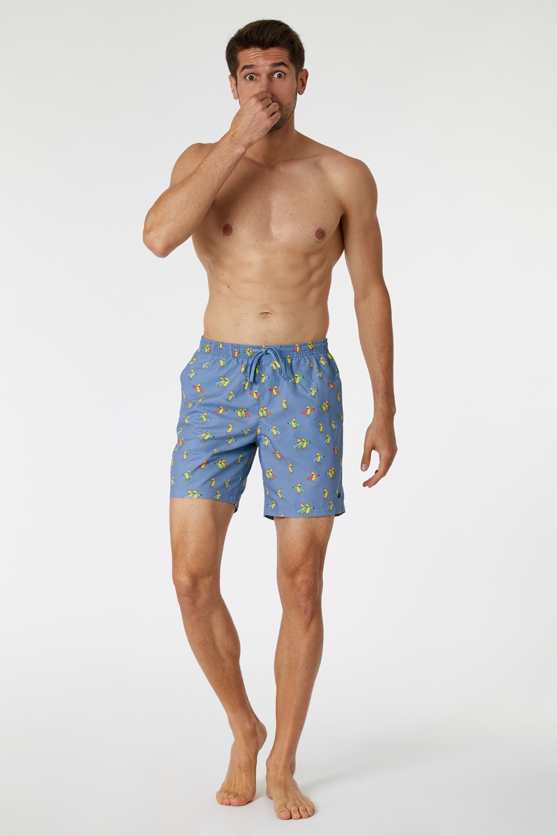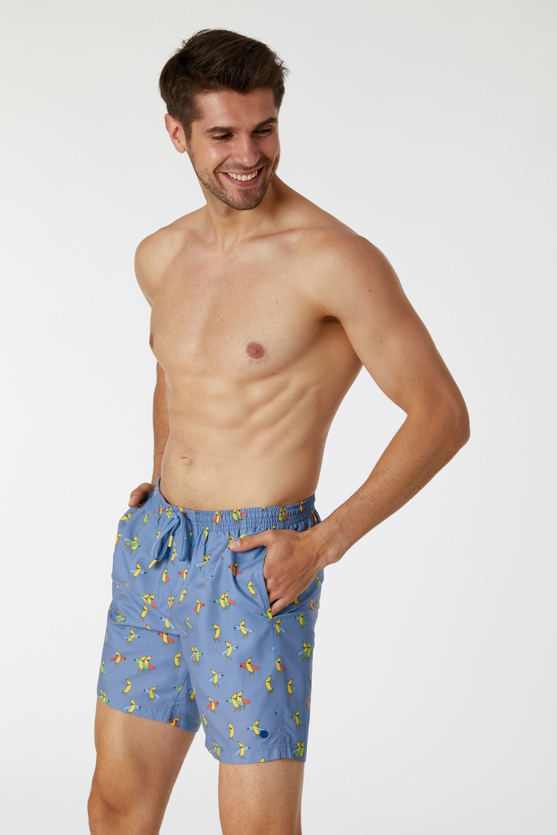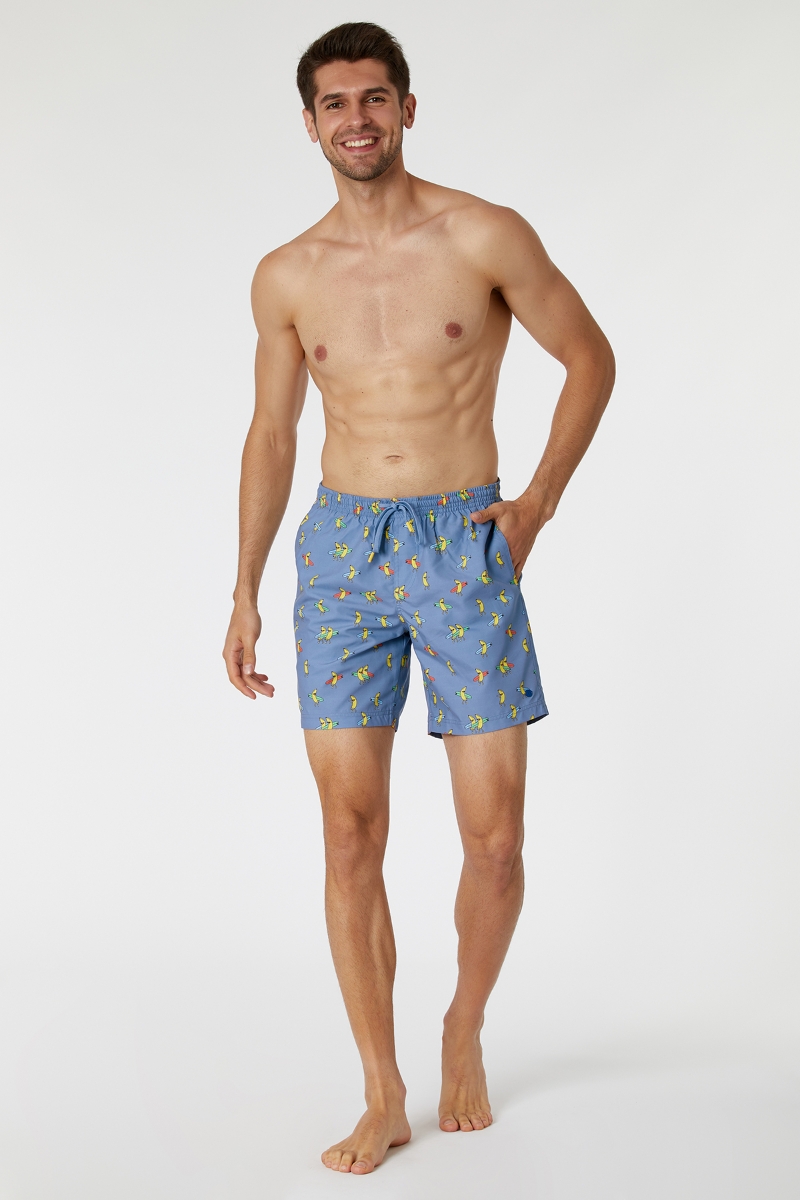- Erkek Deniz Şortu-Qww - 927-Muz Baskılı Mavi