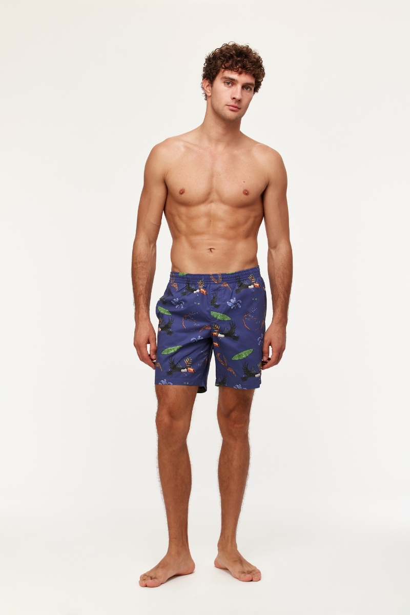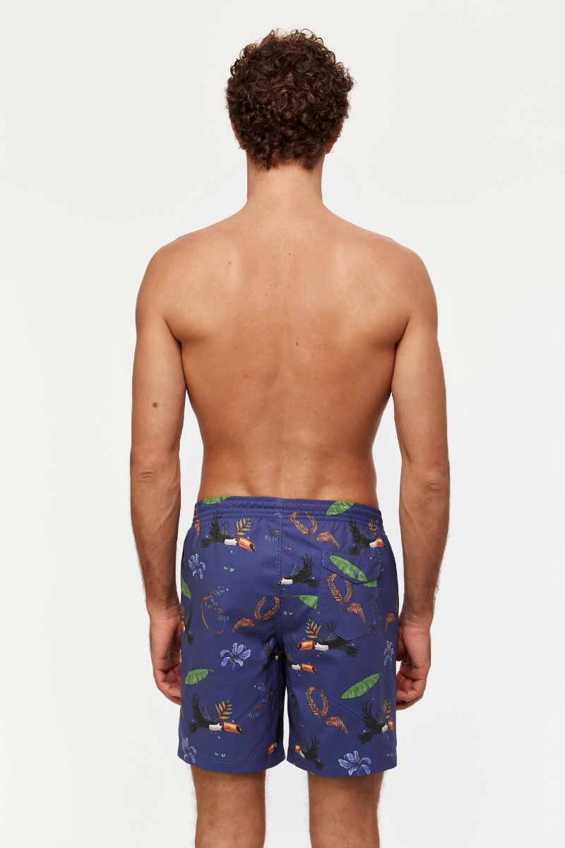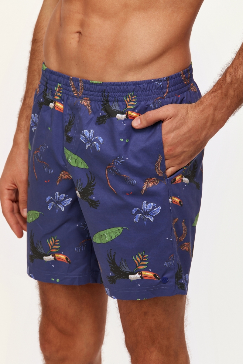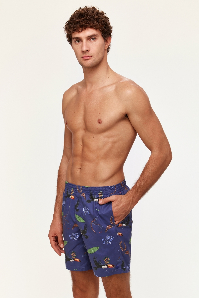 - Erkek Deniz Şortu-Qww - 933-Tukan Baskılı Lacivert