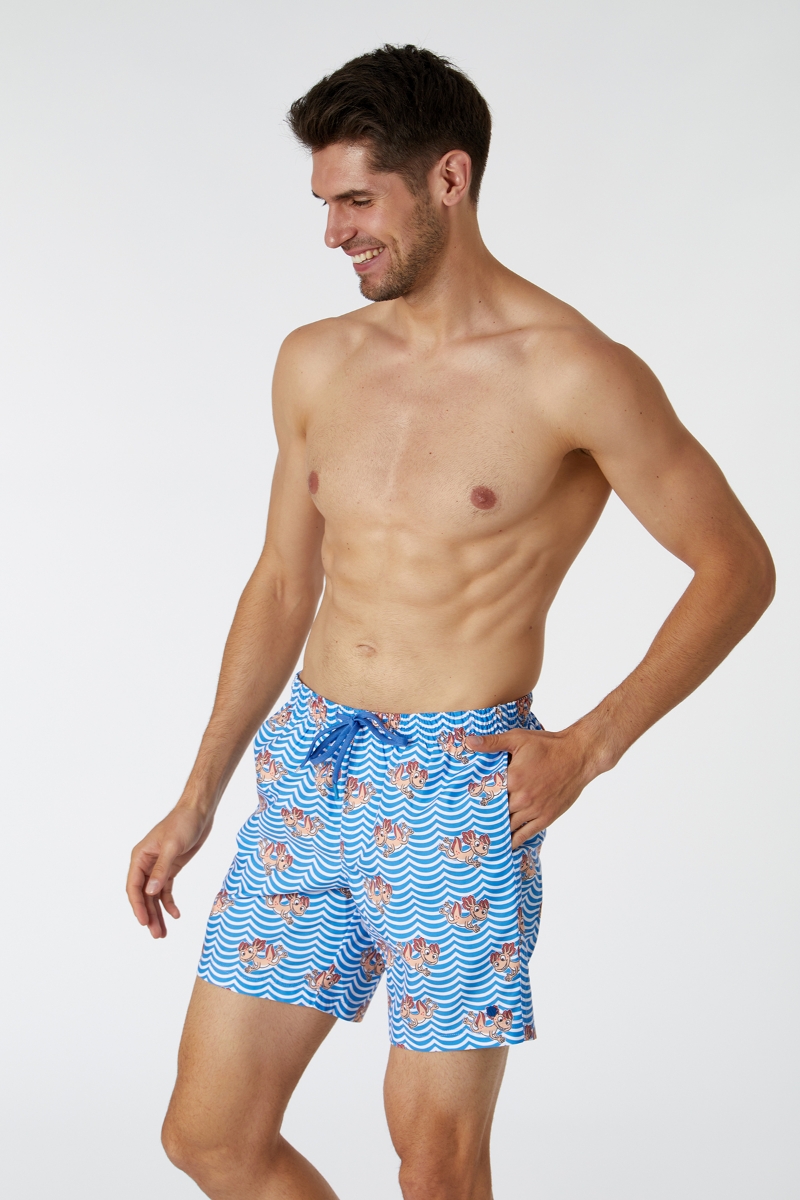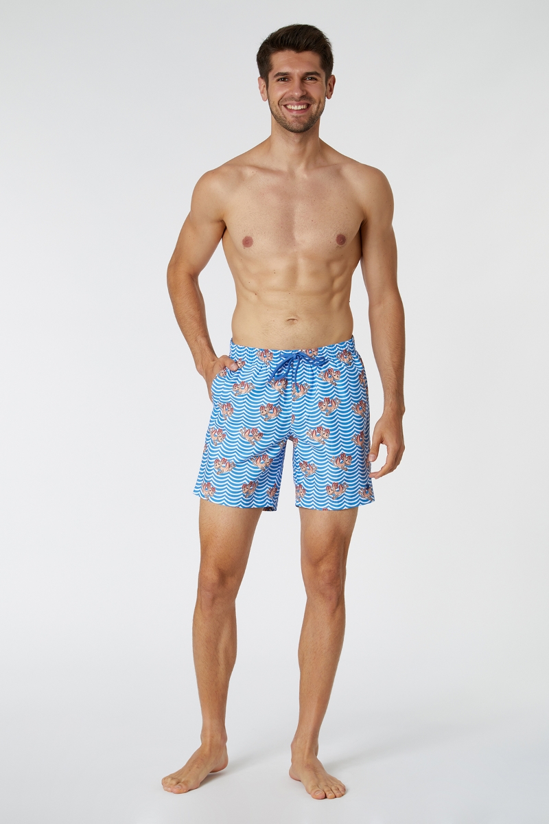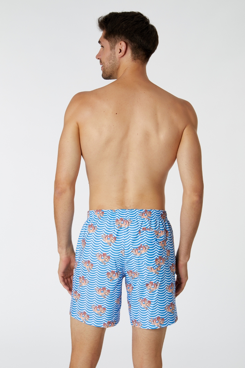 - Erkek Deniz Şortu-Zww - 924-Semender Baskılı Mavi
