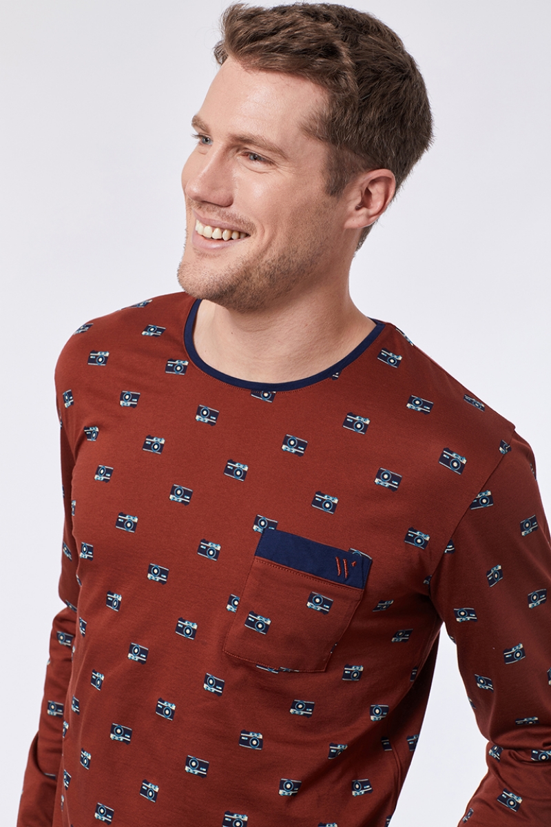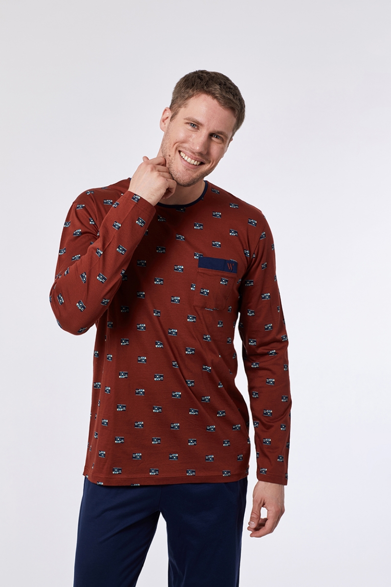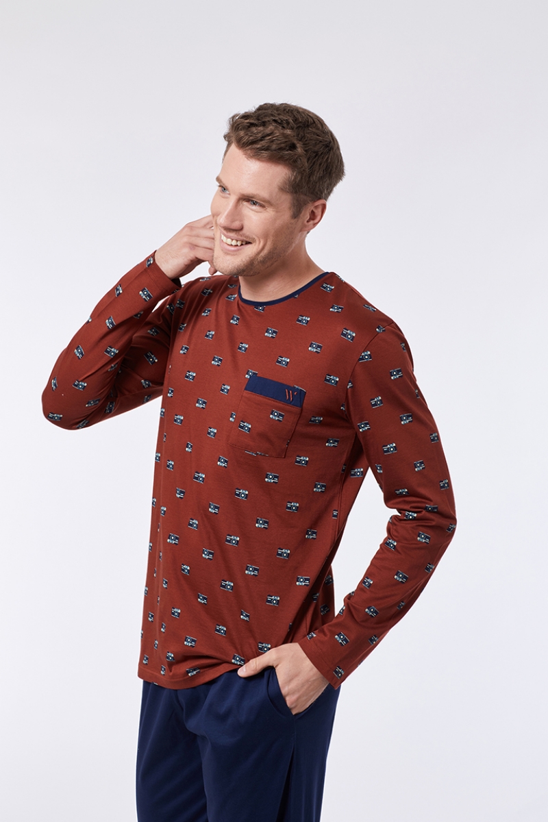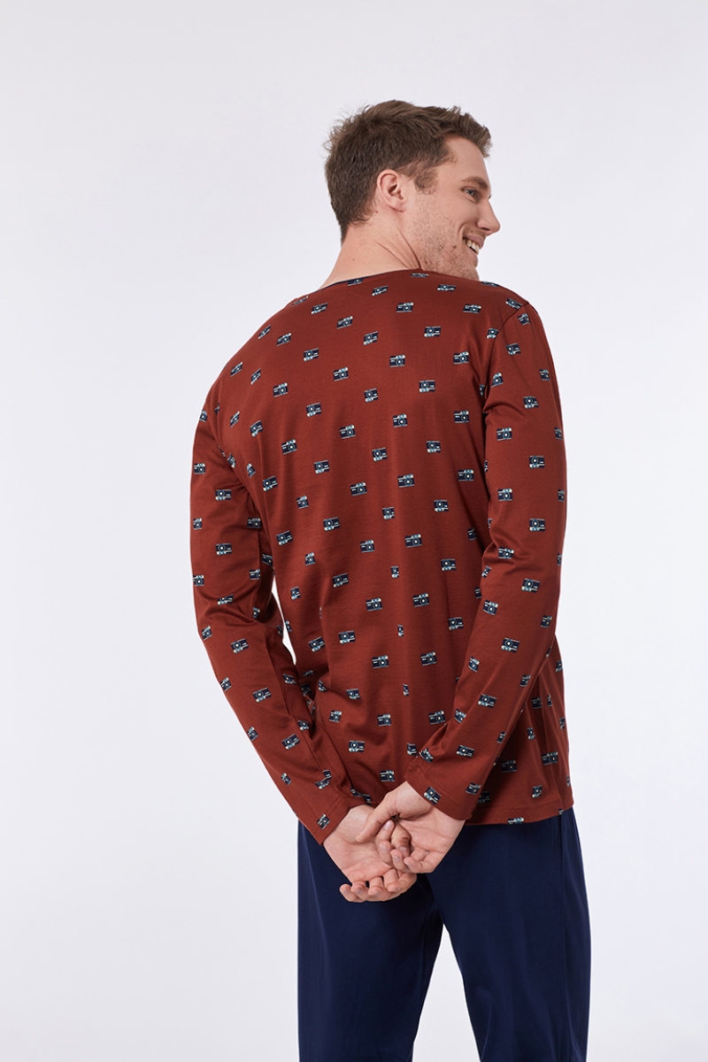 - Erkek Pijama-Mrl - 962-Boğa Baskılı Kırmızımsı Kahve