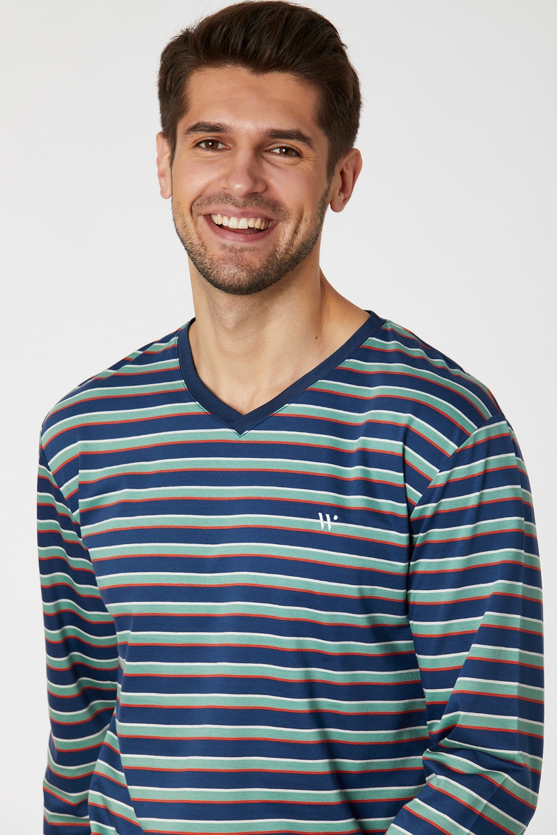 - Erkek Pijama-Mvl - 977-Krokodil Temalı Çok Renkli Çizgili