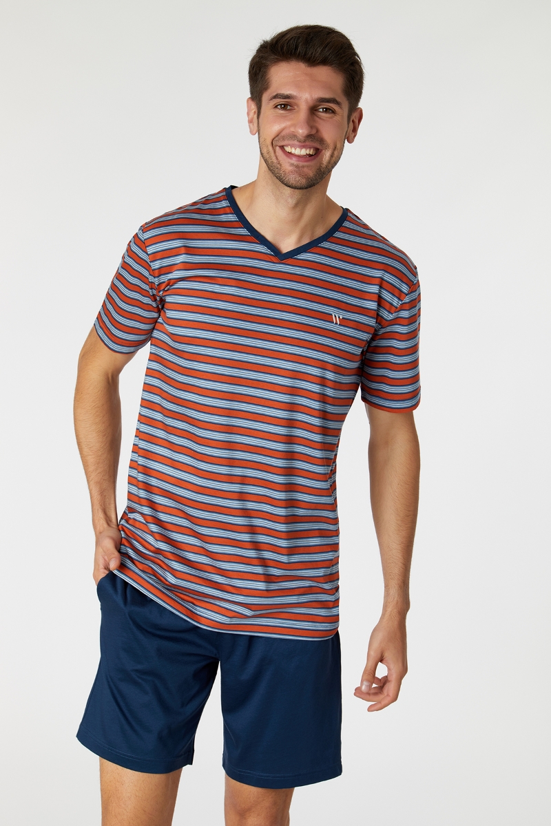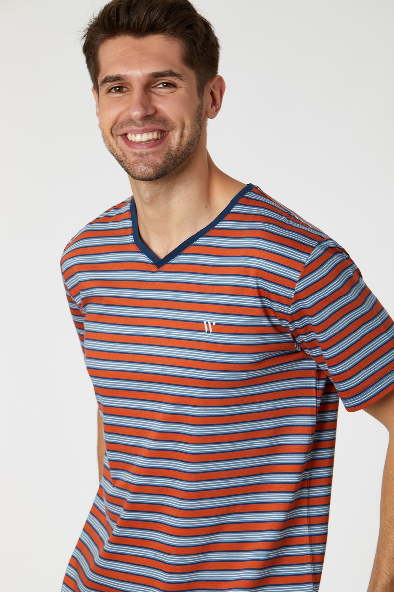 - Erkek Pijama-Mvs - 946-Mandril Temalı Çizgili Turuncu