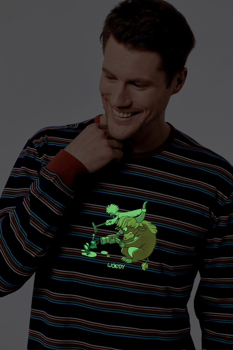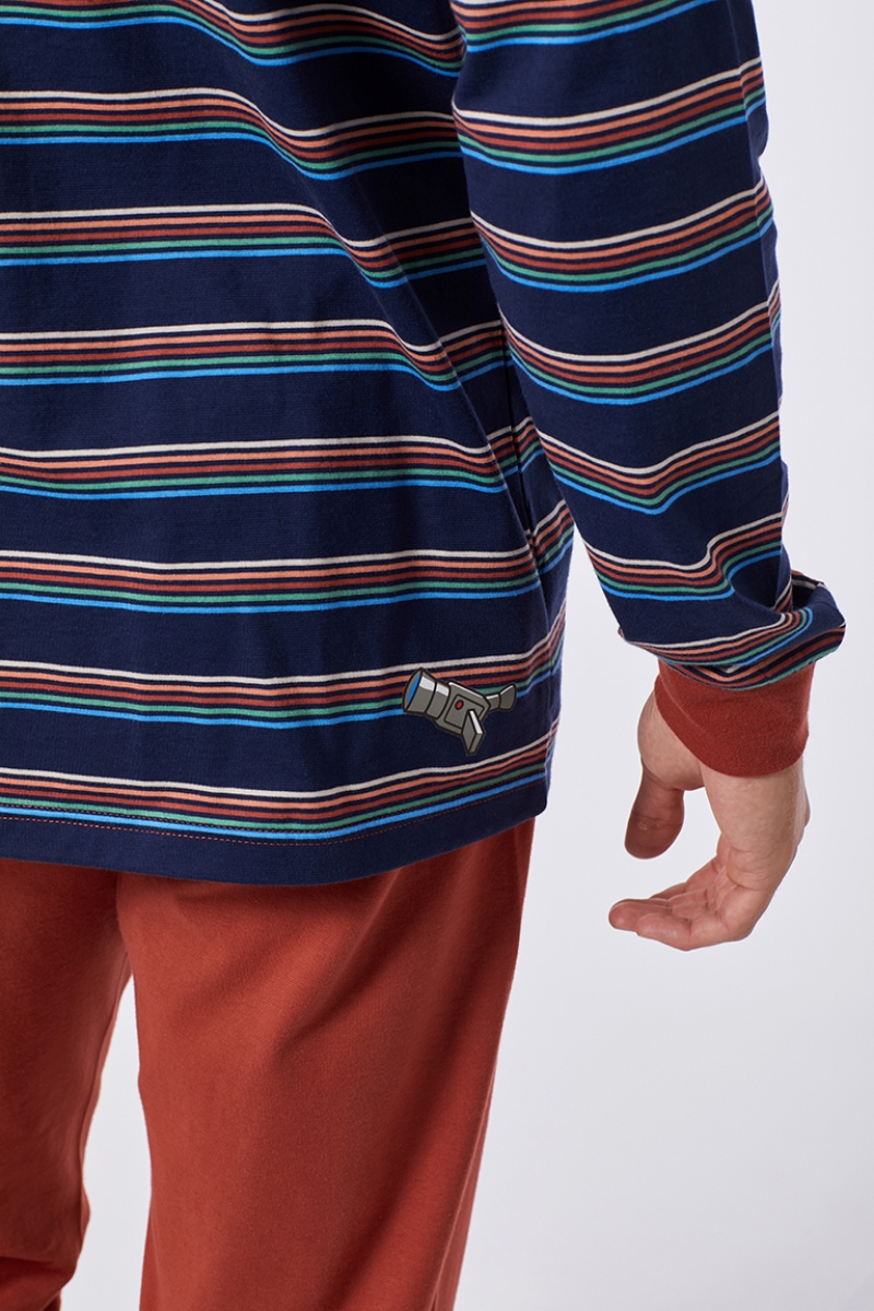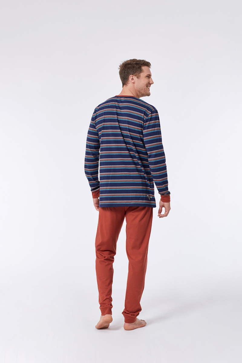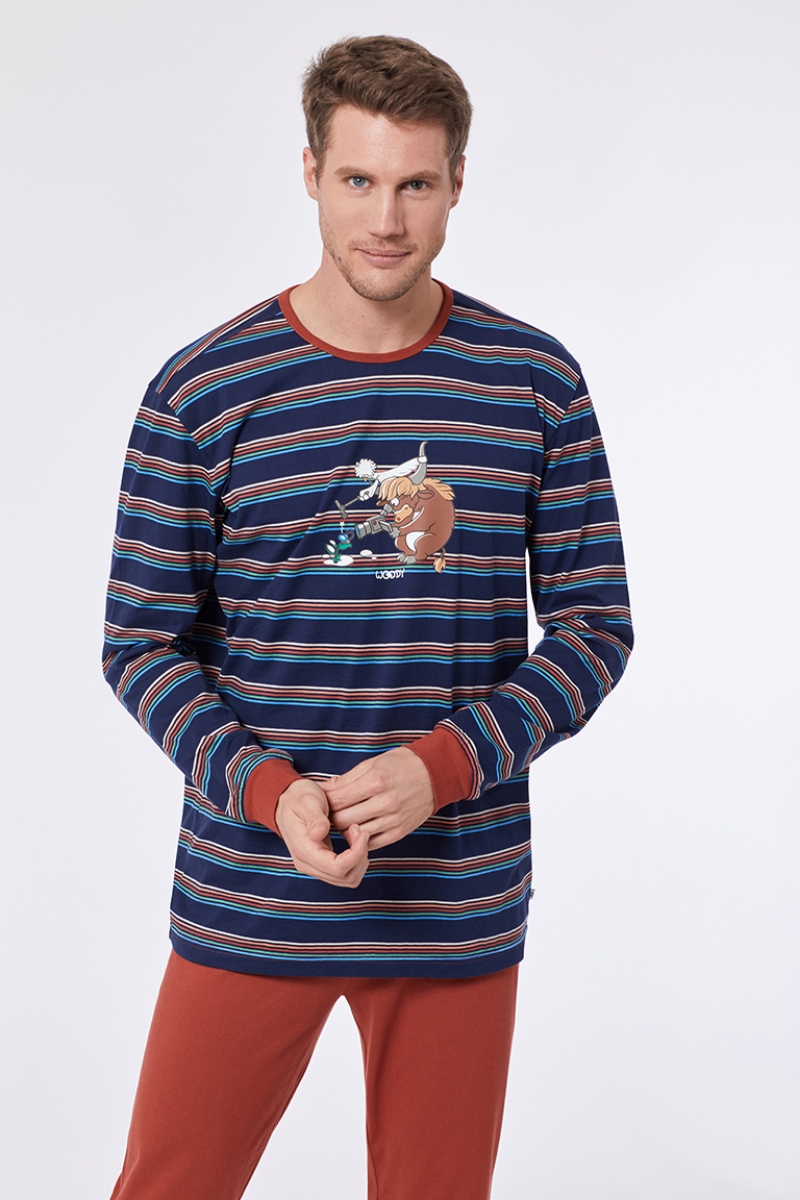 - Erkek Pijama-Plc - 901-Boğa Temalı Çizgili Koyu Lacivert