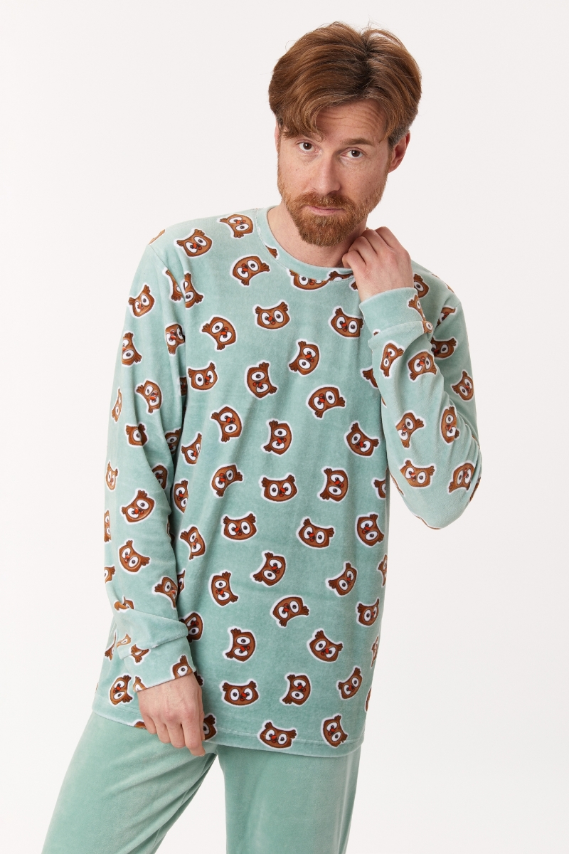 - Erkek Pijama-Plc - 910-Baykuş Baskılı Mavi