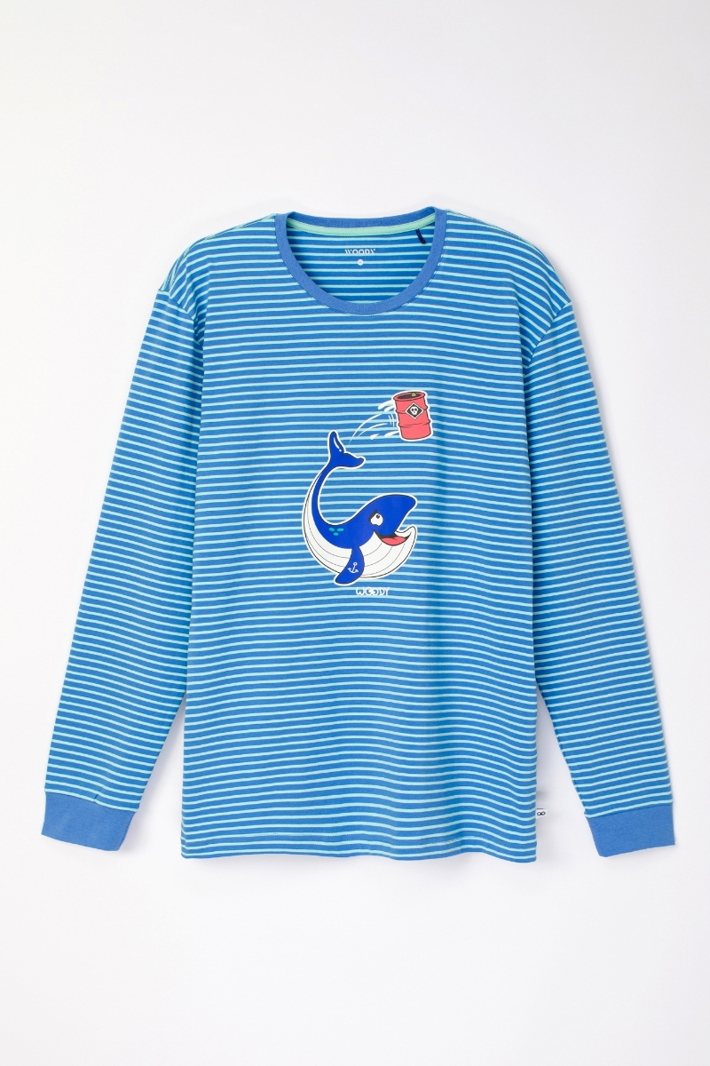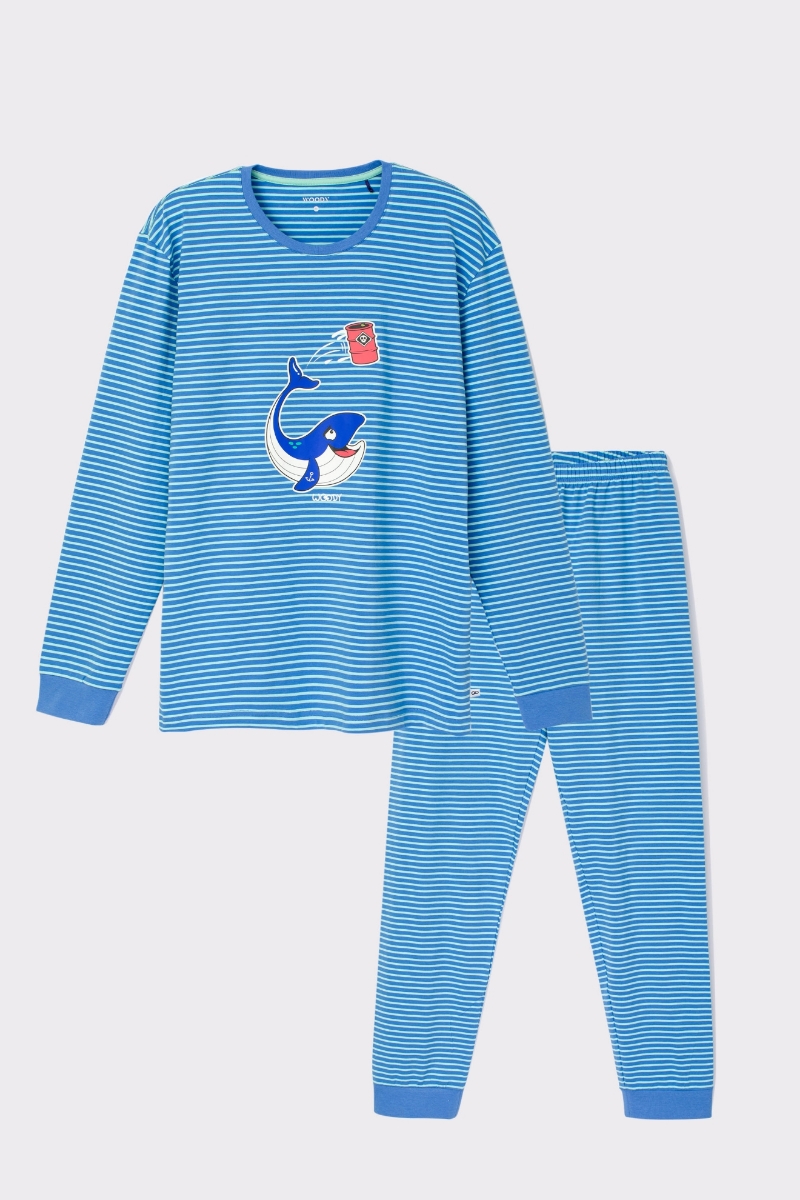 - Erkek Pijama-Plc - 913-Balina Temalı Çizgili Mavi