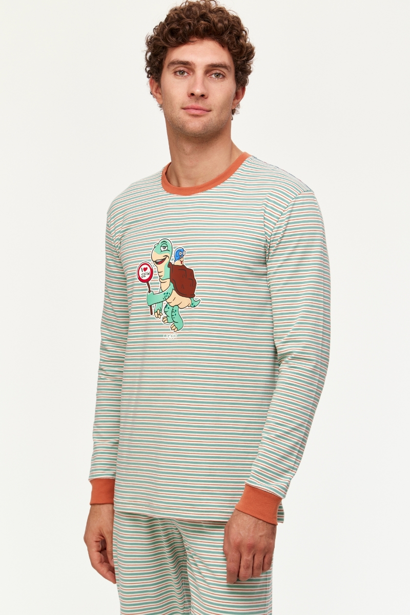 - Erkek Pijama-Plc - 914-Kaplumbağa Temalı Çizgili Turuncu