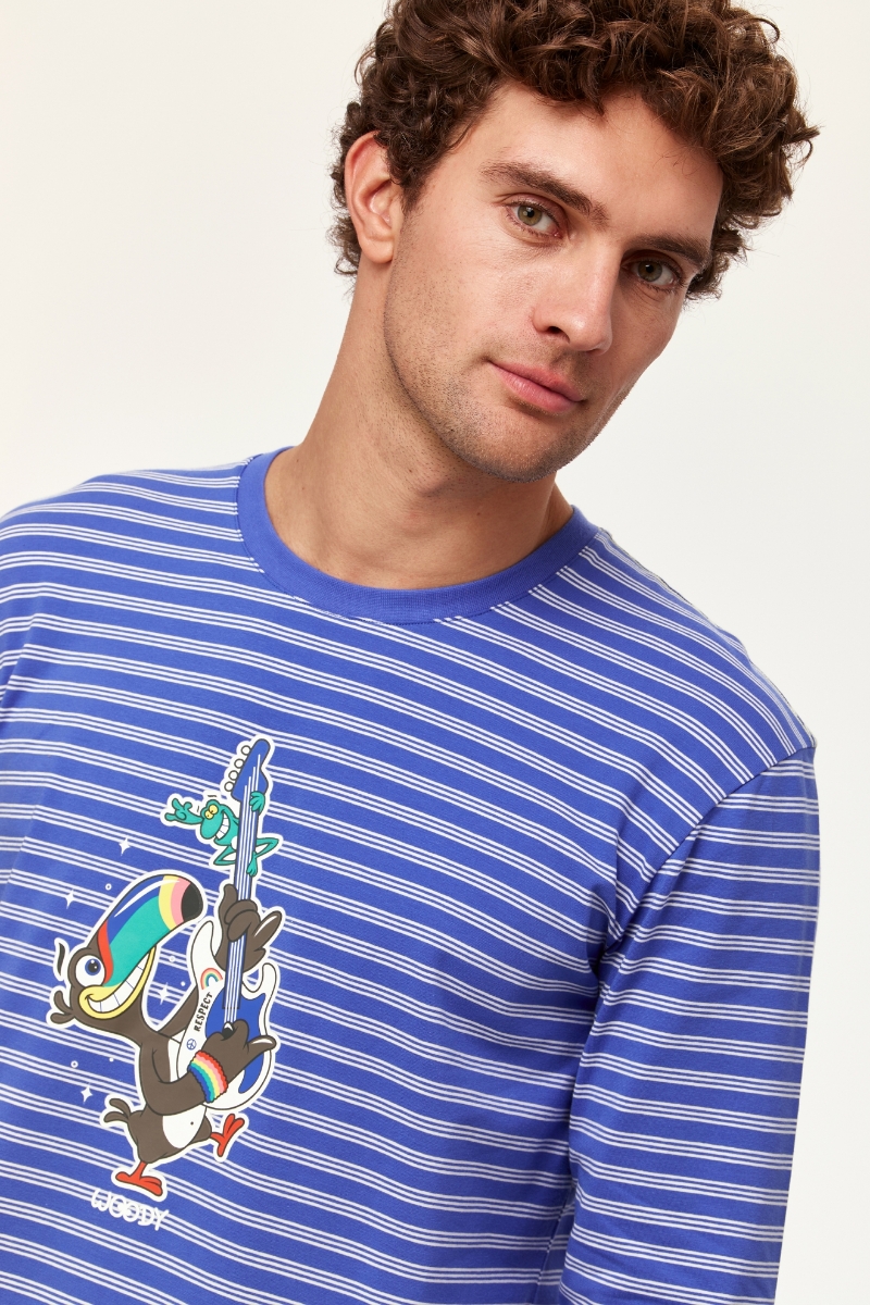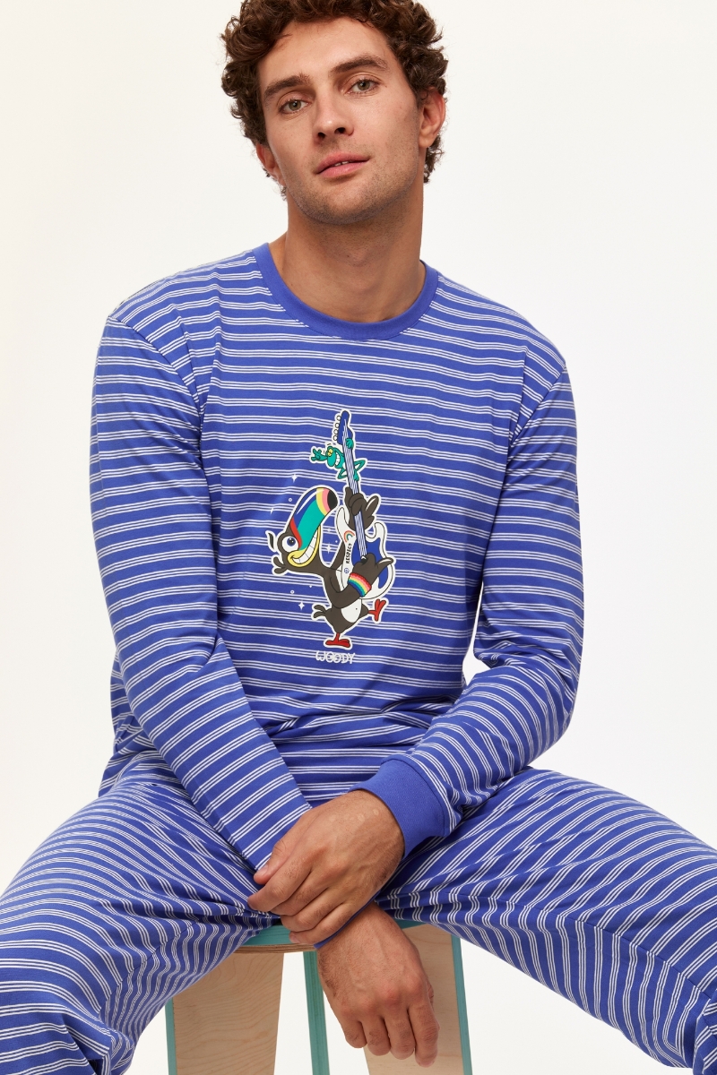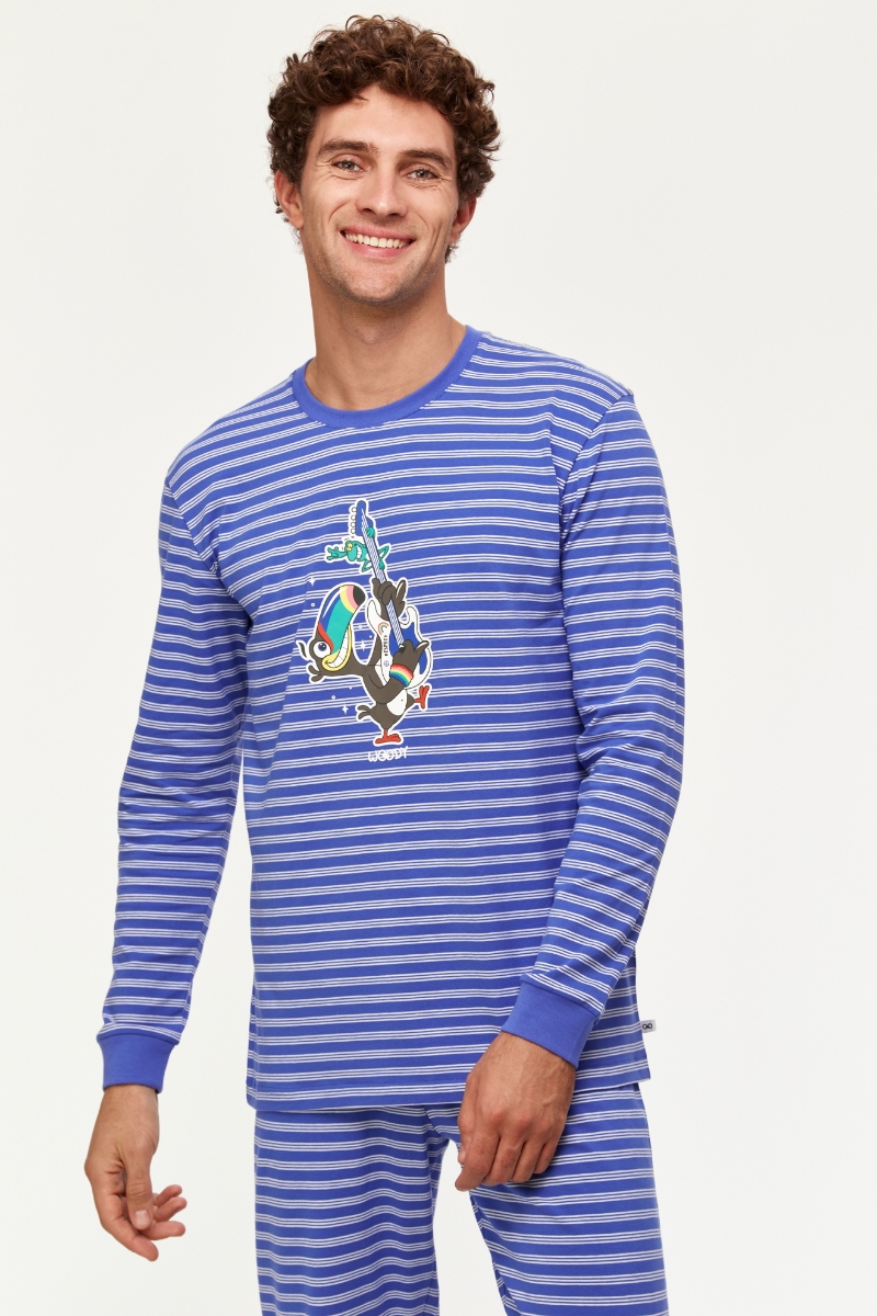 - Erkek Pijama-Plc - 915-Tukan Temalı Çizgili Ekru