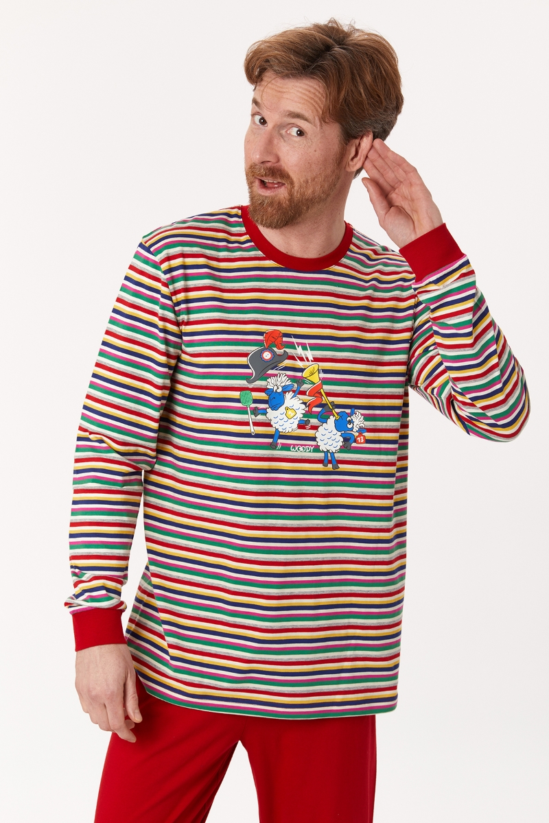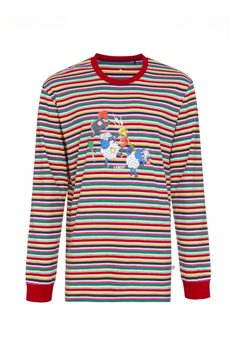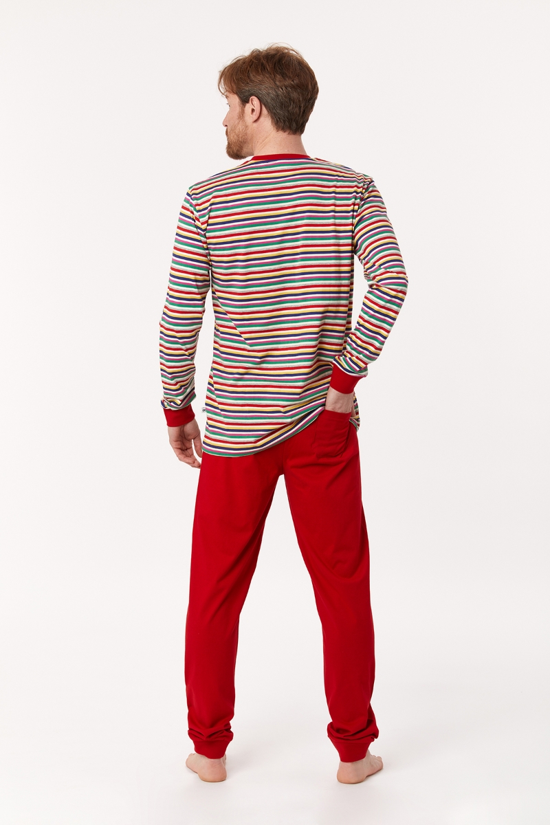 - Erkek Pijama-Plc - 921-Koyun Temalı Çok Renkli Çizgili Fuşya