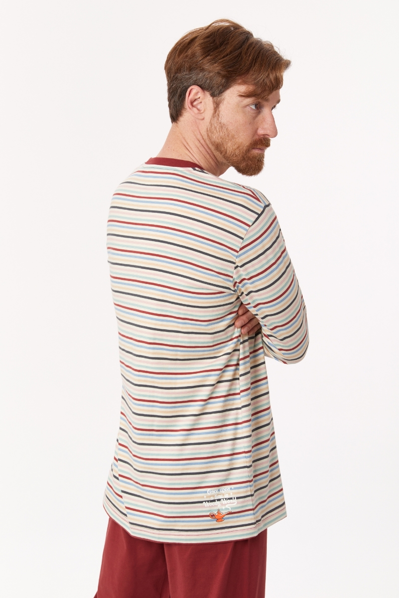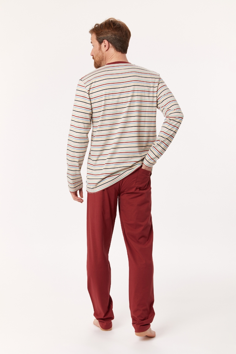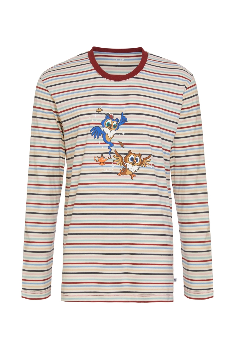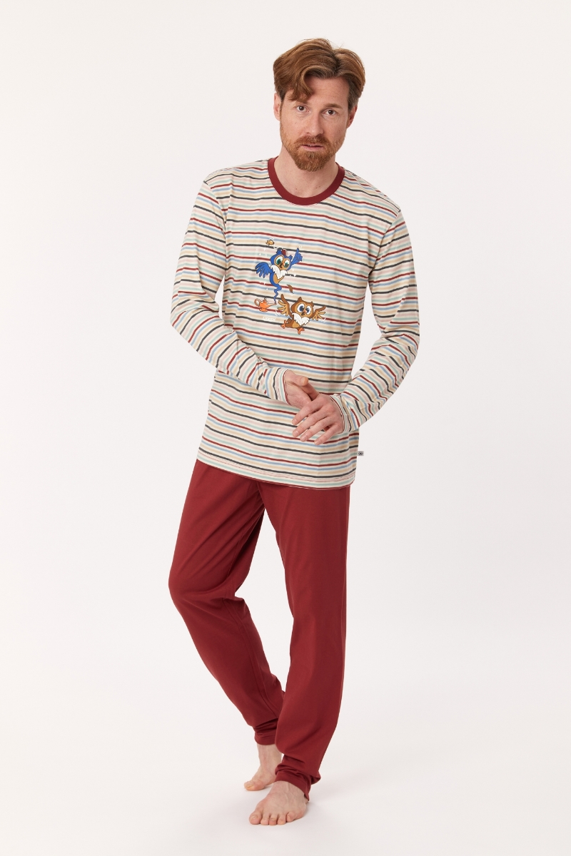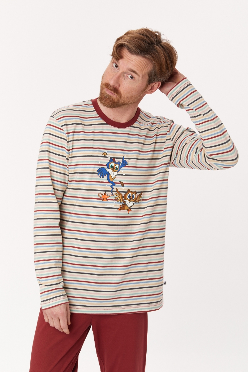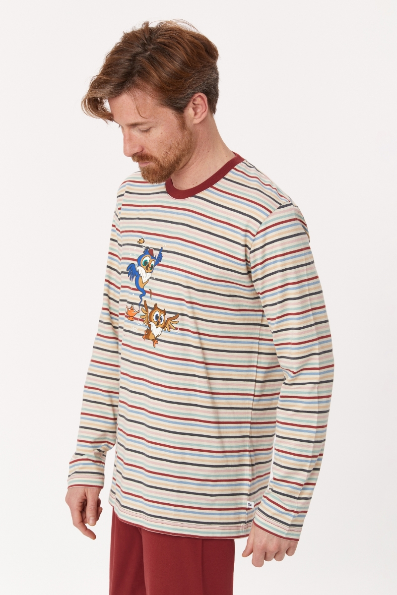 - Erkek Pijama-Pls - 931-Baykuş Temalı Çok Renkli Çizgili Ekru