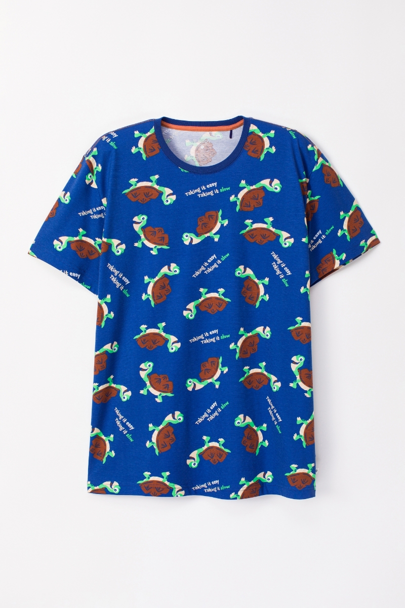 - Erkek Pijama-Pza - 911-Kaplumbağa Baskılı Lacivert