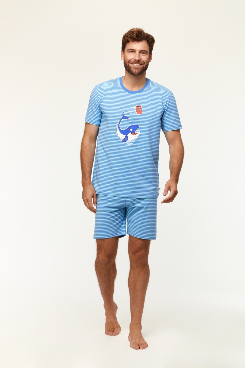 - Erkek Pijama-Pza - 913-Balina Temalı Çizgili Mavi